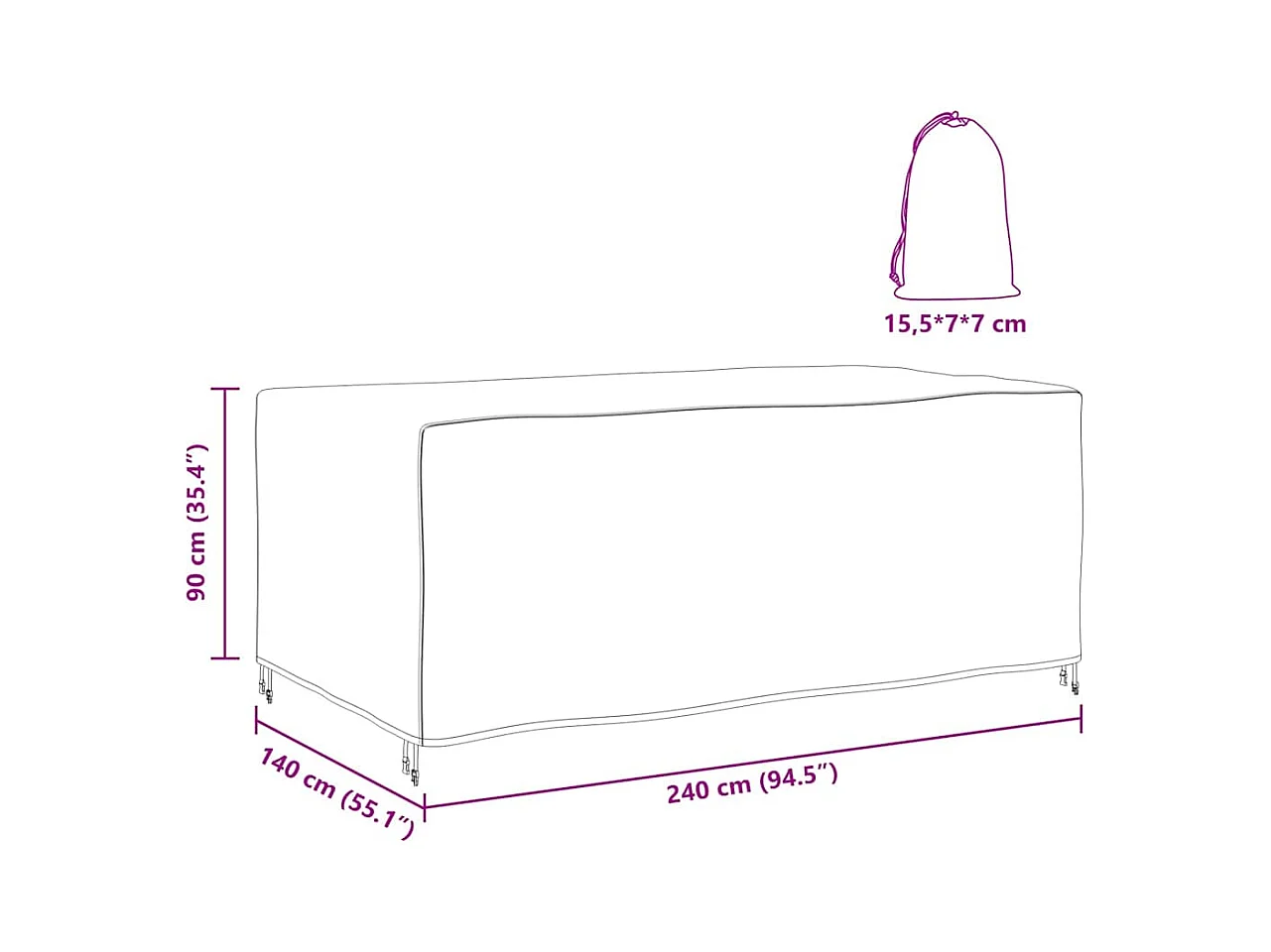 Copertura per mobili da esterno Nero 240 x 140 x 90 cm 600D