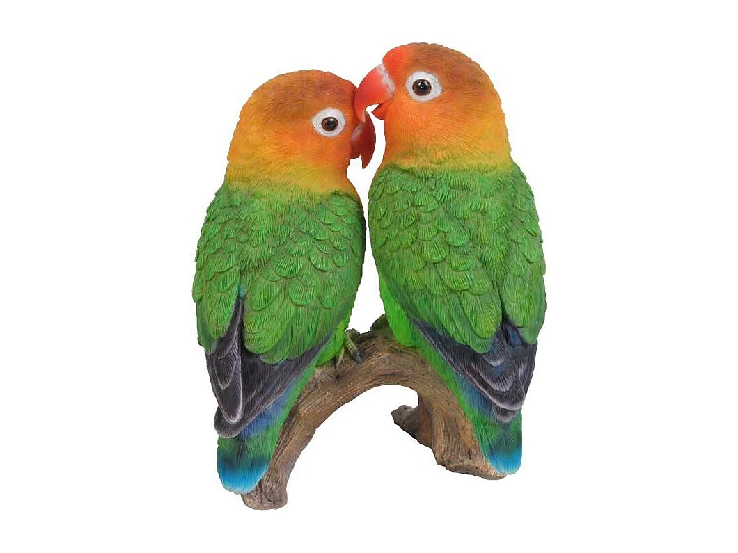Coppia di inseparabili in resina su un ramo