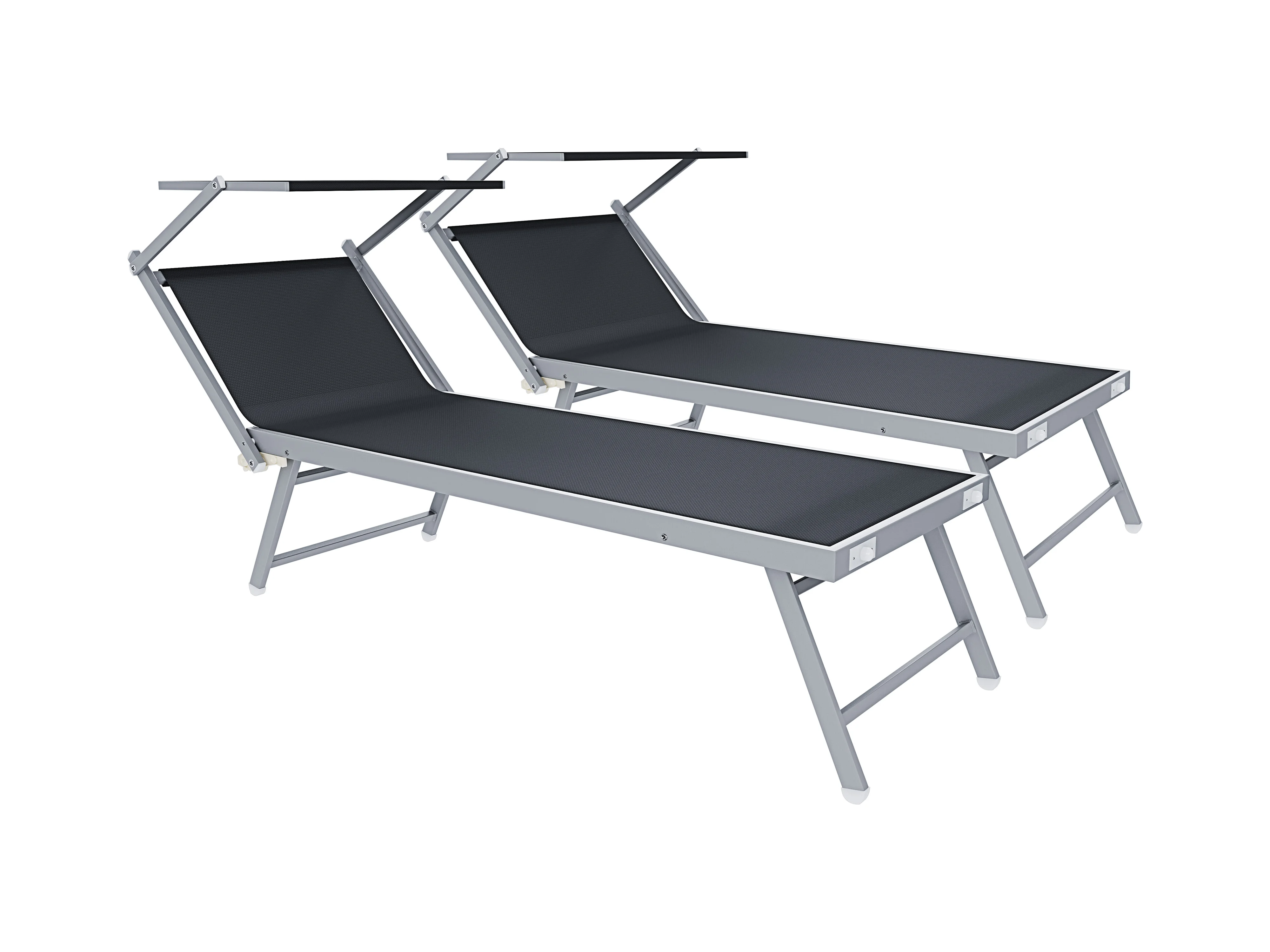 Coppia Di Lettini Grigio Scuro Prendisole Pieghevole Professionale In Alluminio Tettuccio Orientabile Parasole Mare Spiaggia Piscina Giardino 182 x 60 x 38 cm