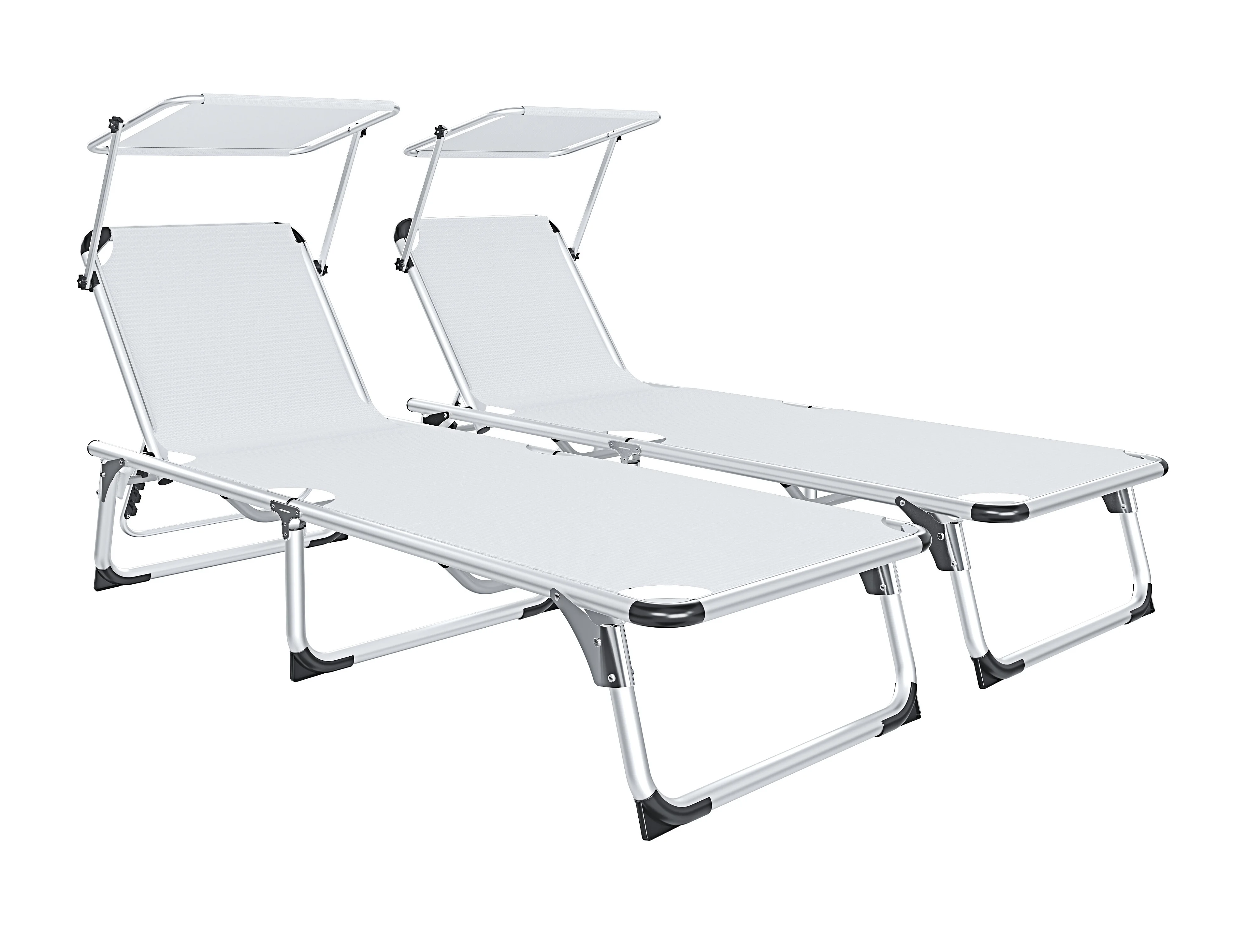 Coppia Di Lettini Pieghevole Prendisole Tettuccio Parasole Schienale Reclinabile Regolabile 6 Posizioni Struttura In Alluminio 187 x 59 x 29 Cm Bianco