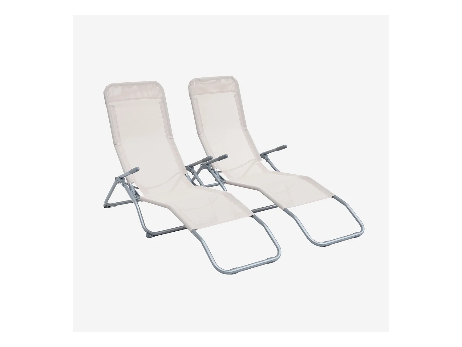 Set di 2 lettini prendisole in textilene 2 posizioni, bianco