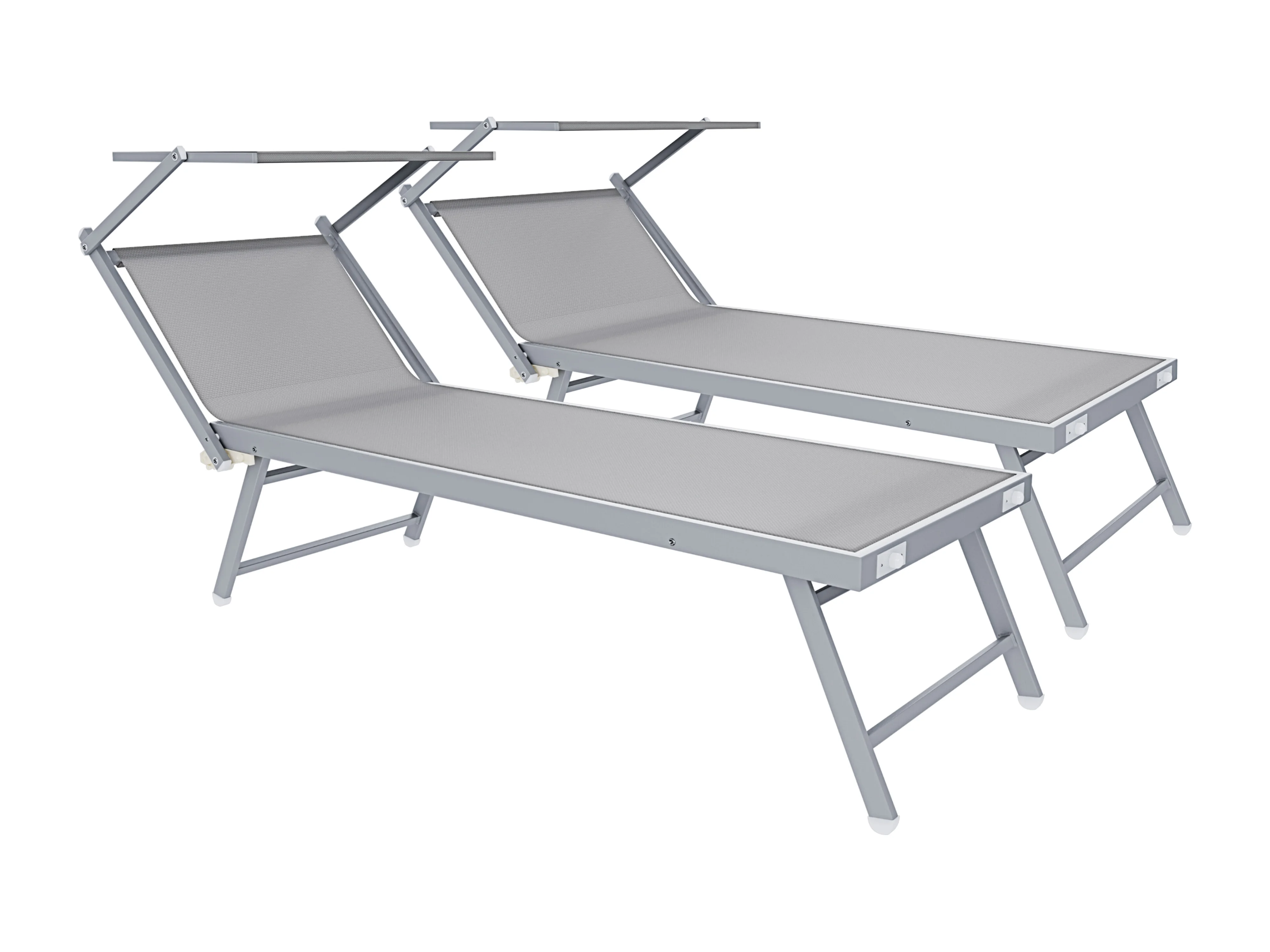 Coppia Di Lettini Grigio Prendisole Pieghevole Professionale In Alluminio Tettuccio Orientabile Tettino Parasole Sdraio Mare Spiaggia Piscina 182 x 60 x 38 cm
