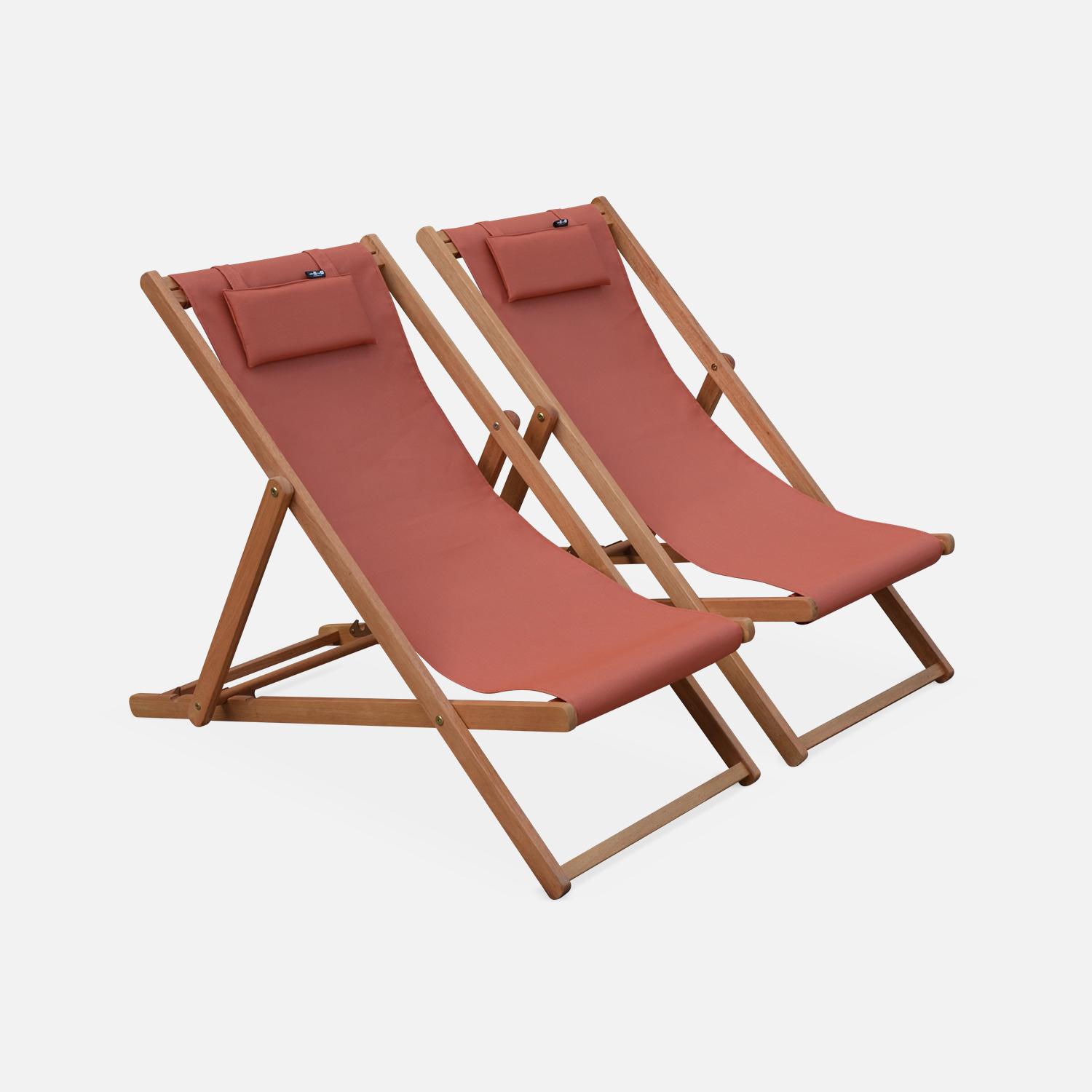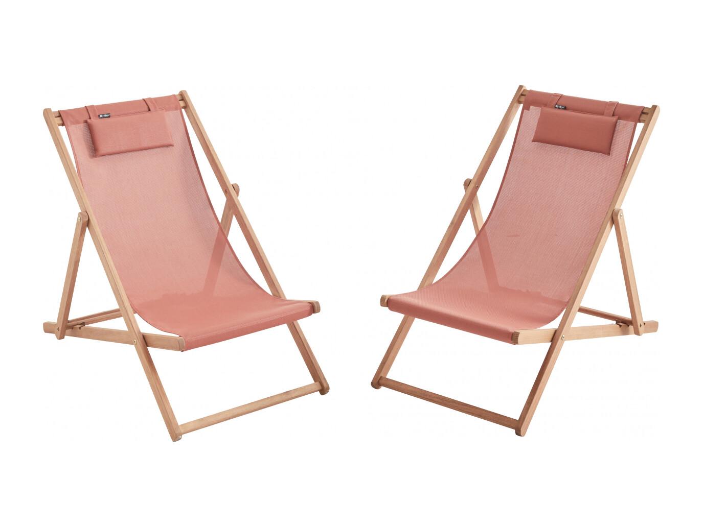 Set di 2 sedie sdraio in legno con cusino poggiatesta, terracotta