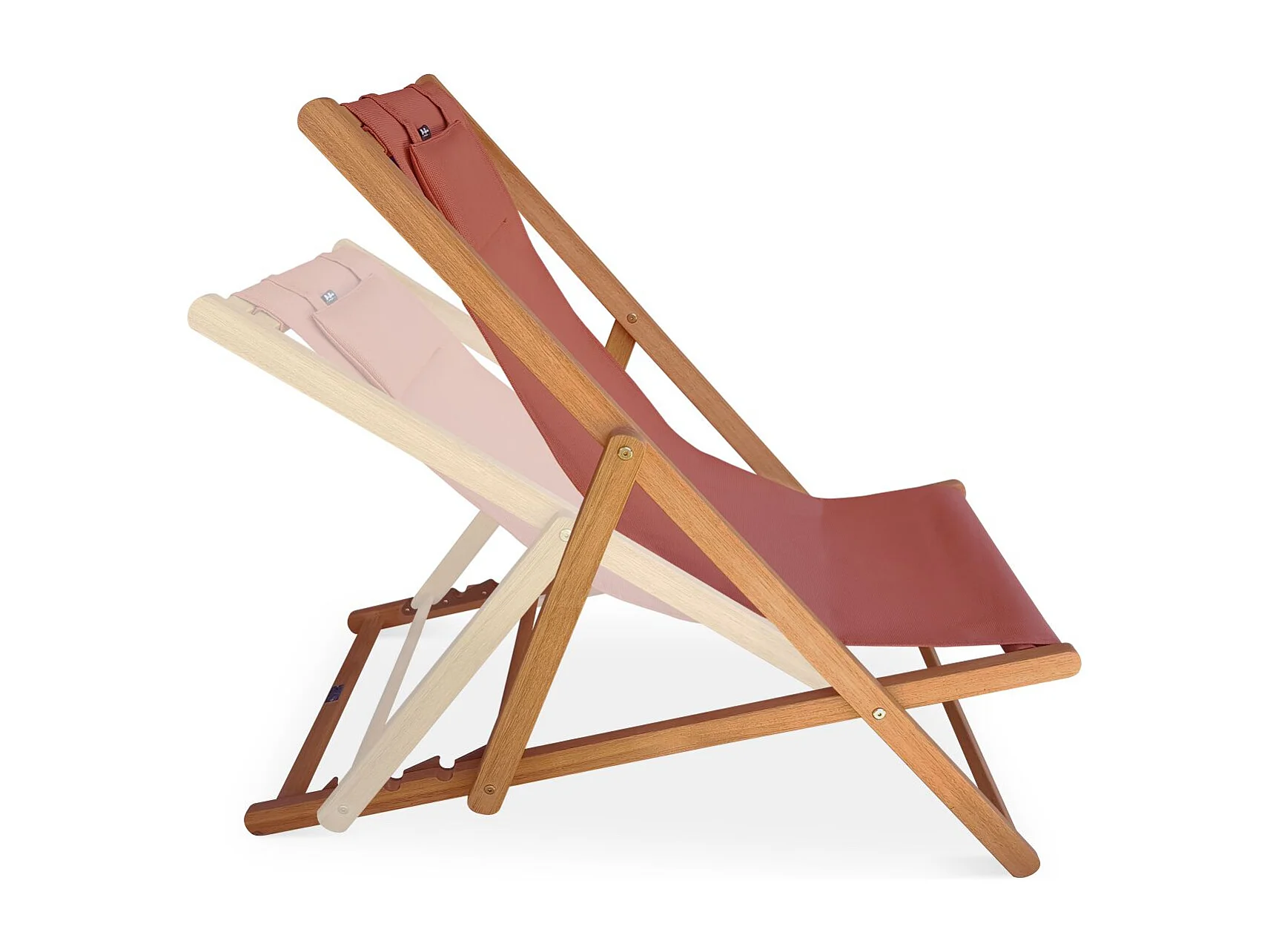 Set 2 lettini prendisole in legno con cuscino poggiatesta, terracotta
