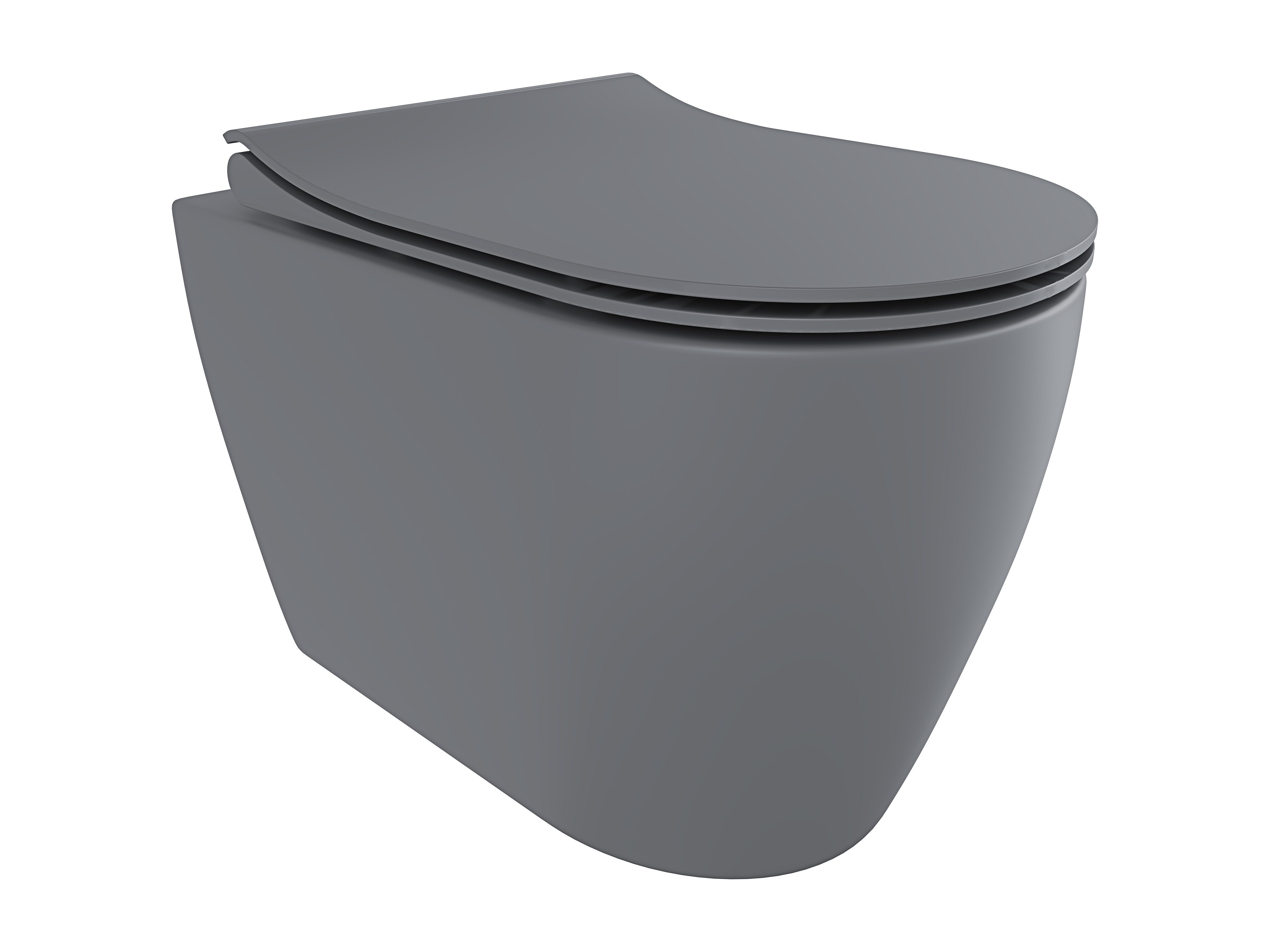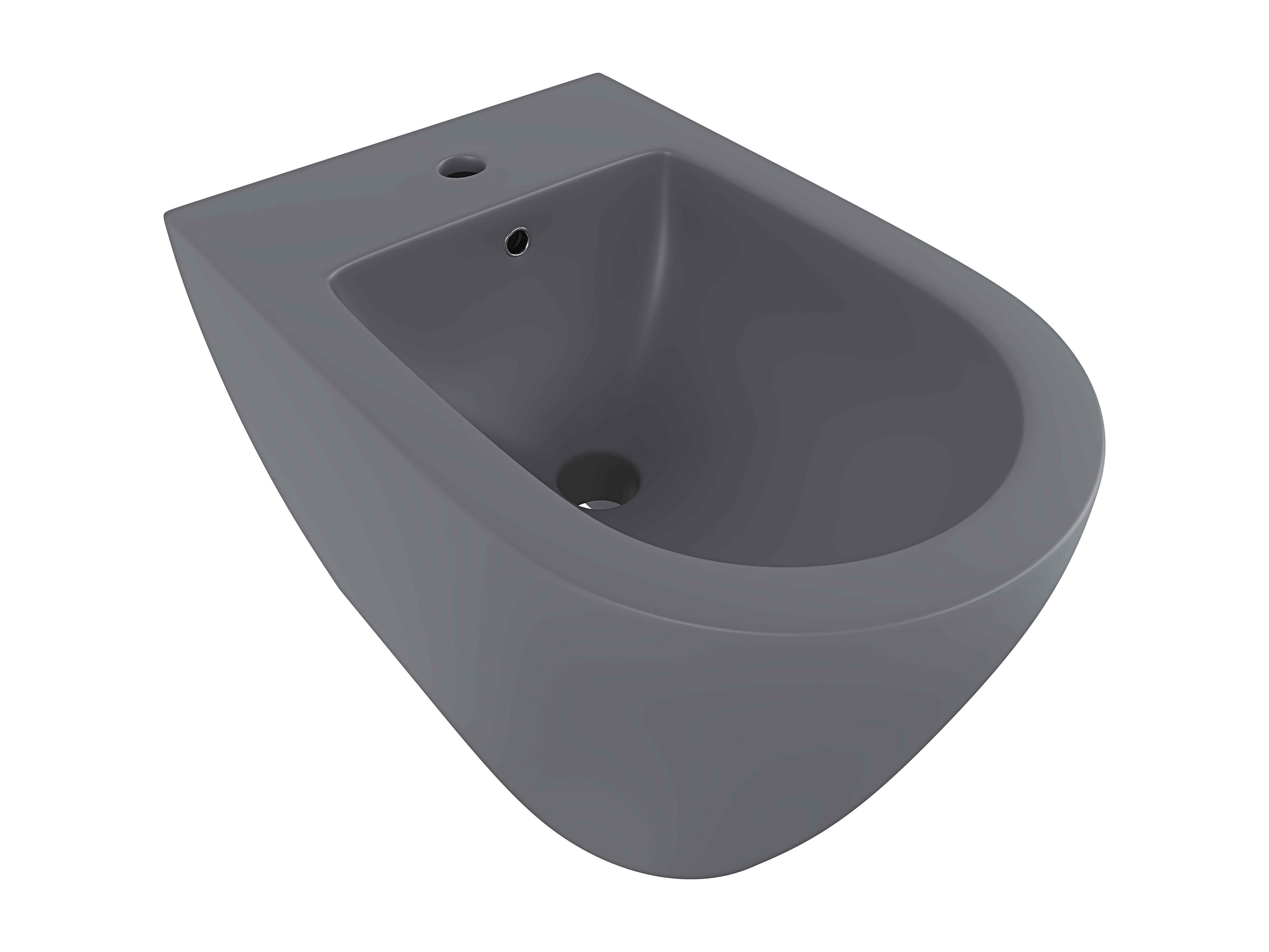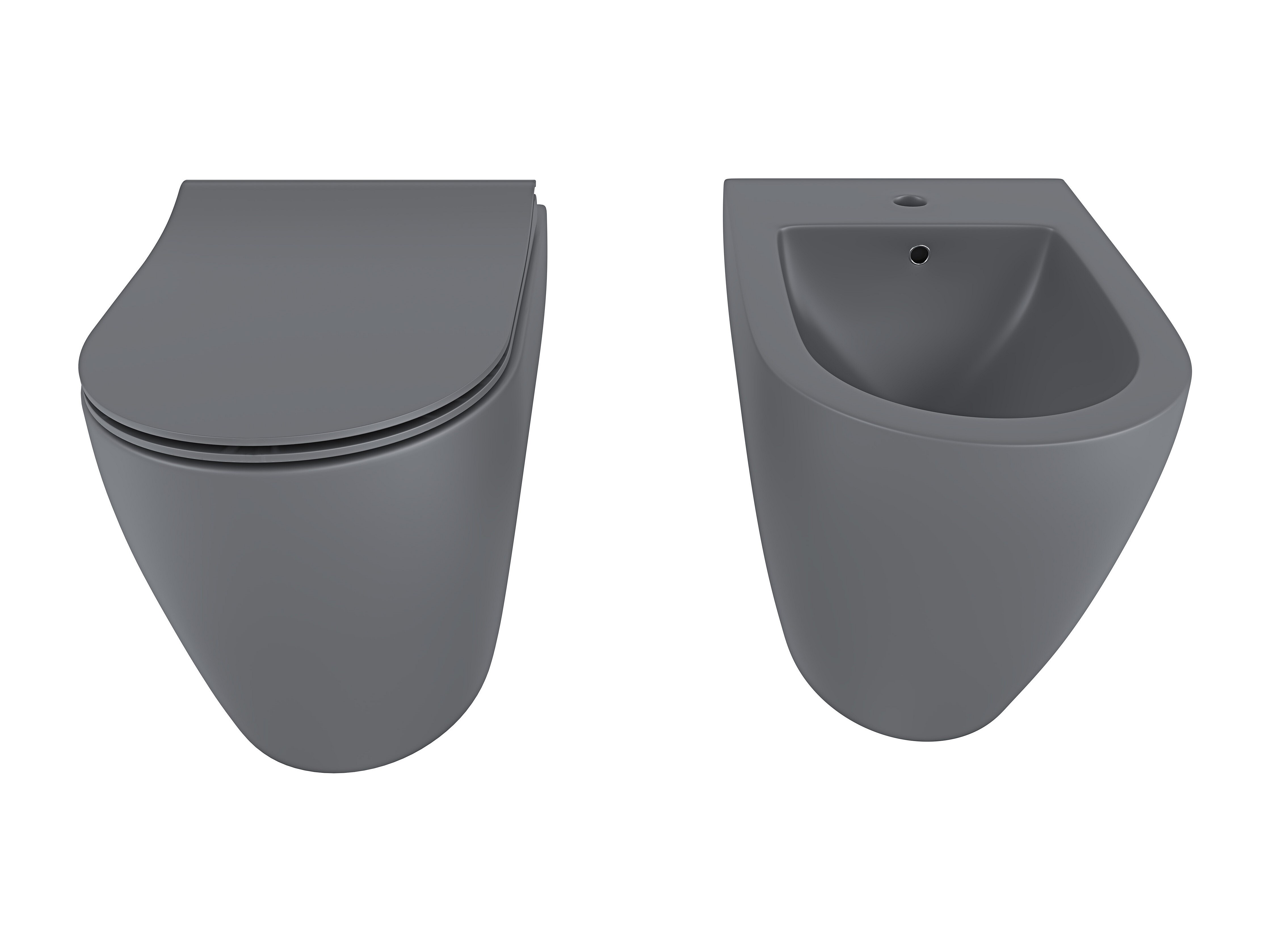 Coppia Sanitari Filomuro Filo Muro Filo Parete Vaso WC E Bidet Design Moderno In Ceramica Con Copriwater Chiusura Soft Close Chiusura Rallentata Colore Grigio Opaco