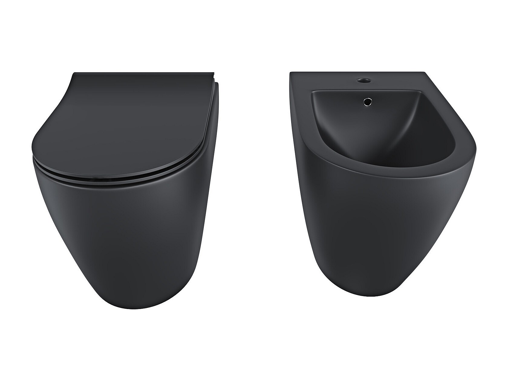 Sanitari bidet e vaso WC a terra filomuro NERO opaco rimless coprivaso softclose Cube