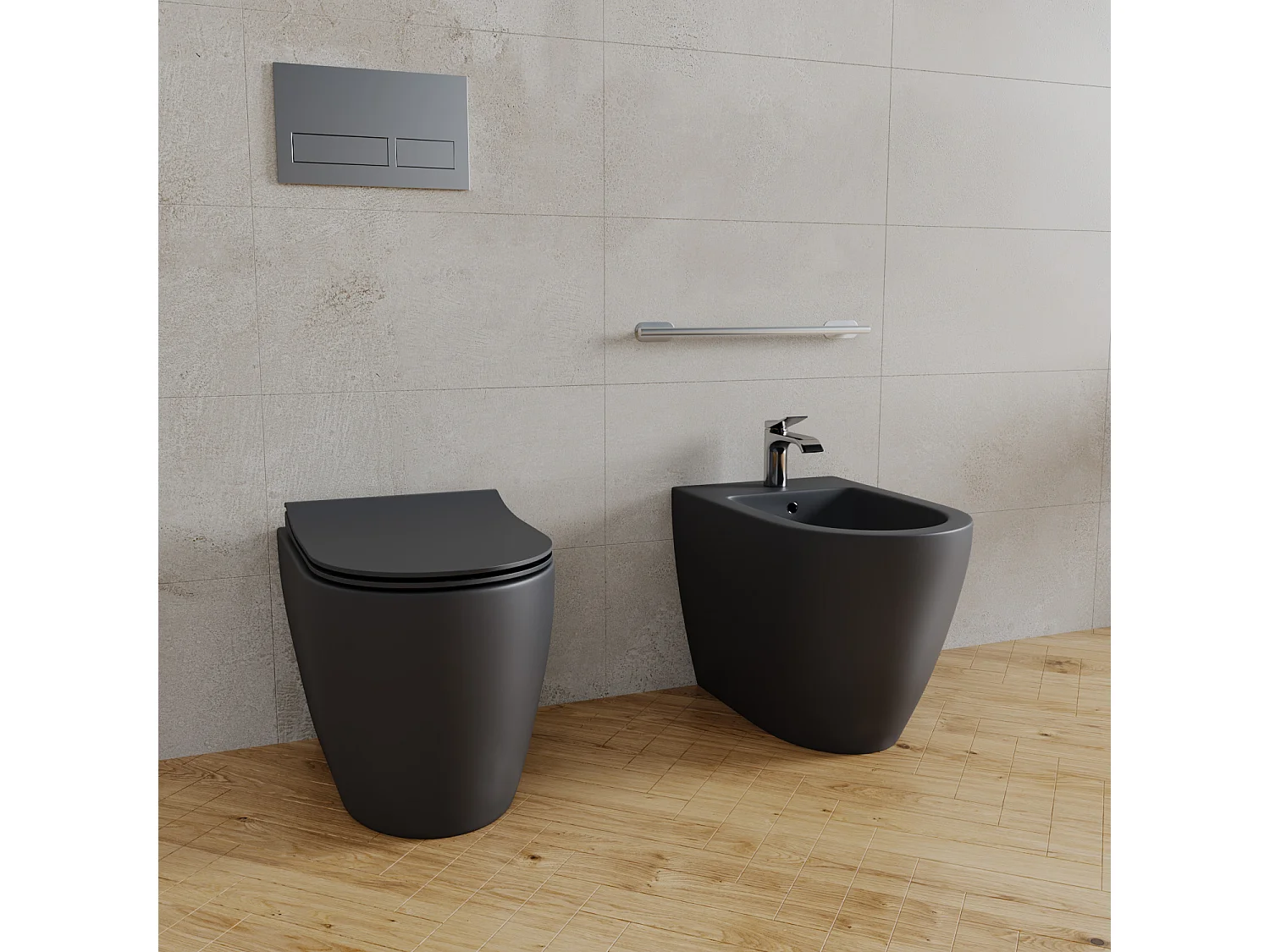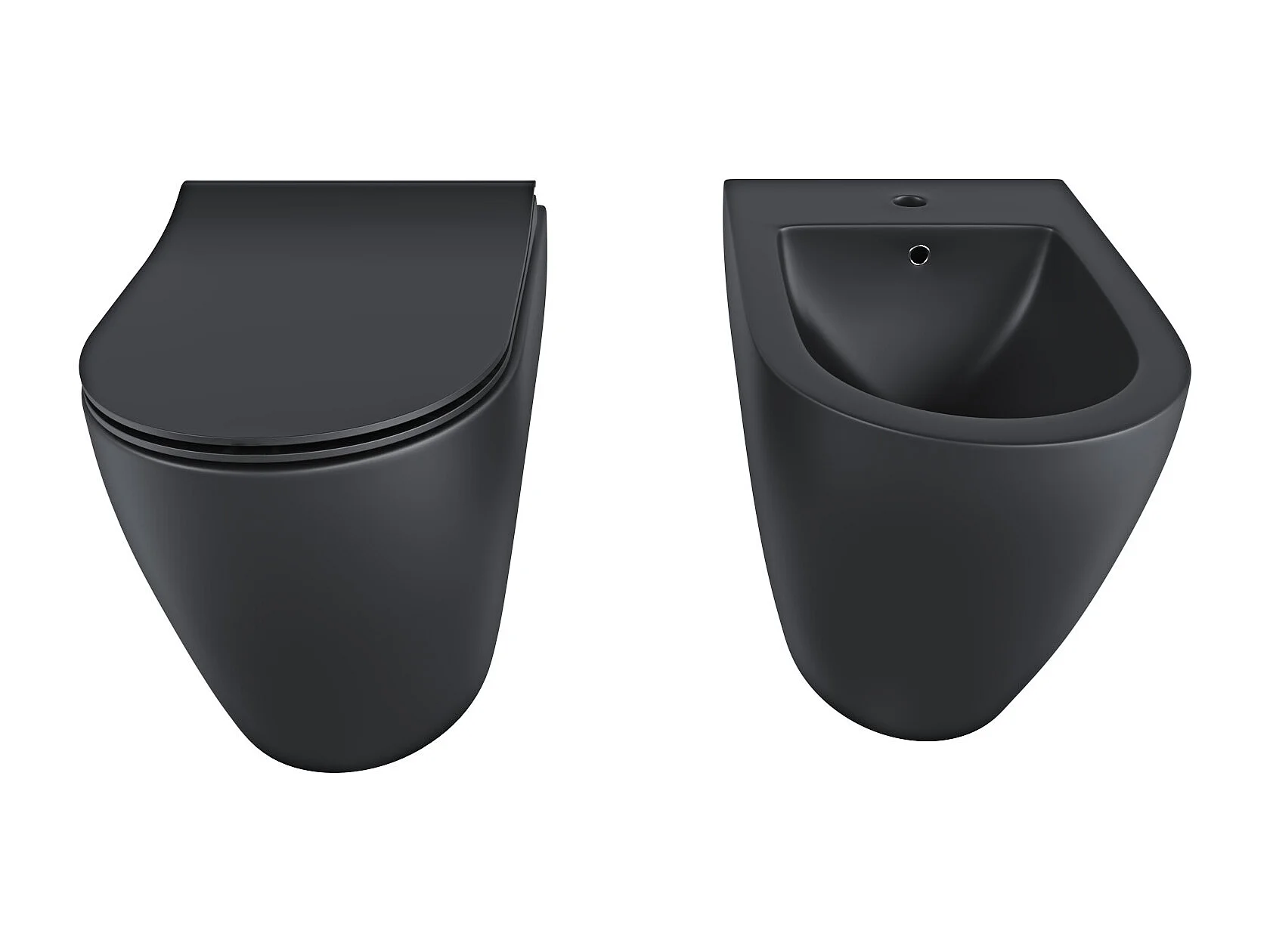 Sanitari bidet e vaso WC a terra scarico vortice nero opaco coprivaso softclose Fast
