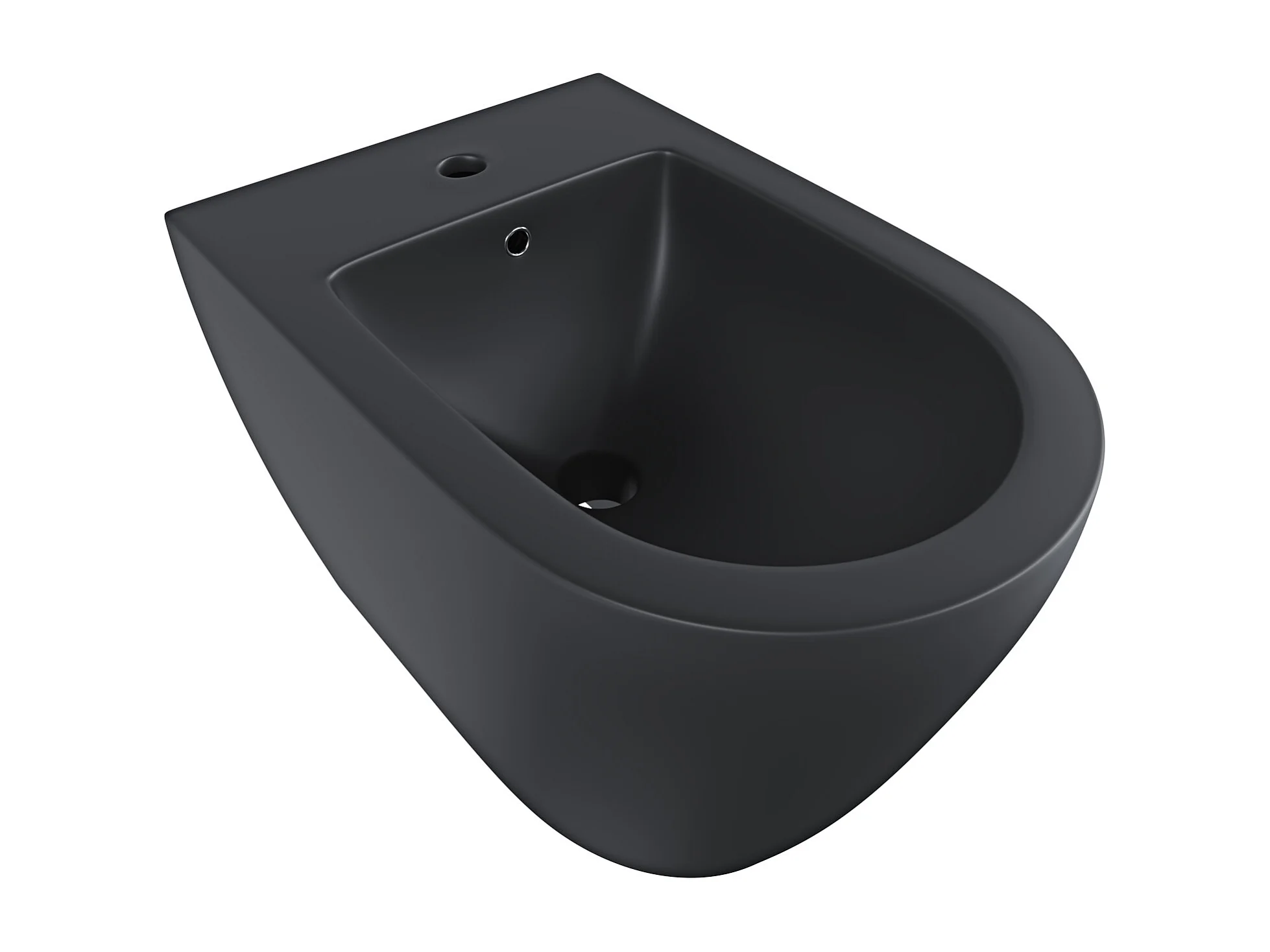 Coppia Sanitari Sospesi Vaso WC Rimless Con Tornado Flush E Bidet Sospeso Moderno Tondo In Ceramica Con Copriwater Chiusura Soft Close Nero Opaco
