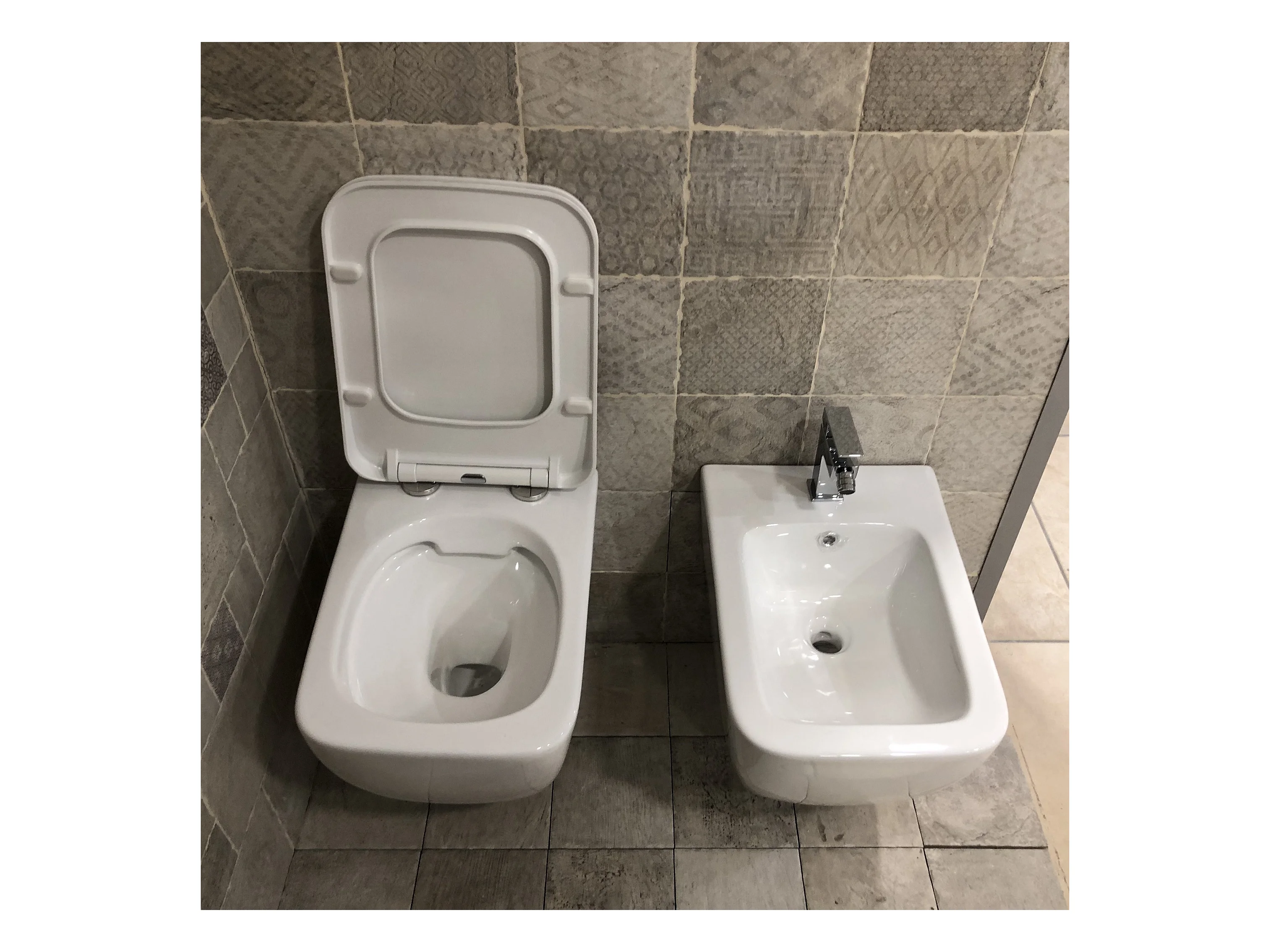 WC sospeso bidet senza bordo in ceramica sciacquone tornado softclose nano