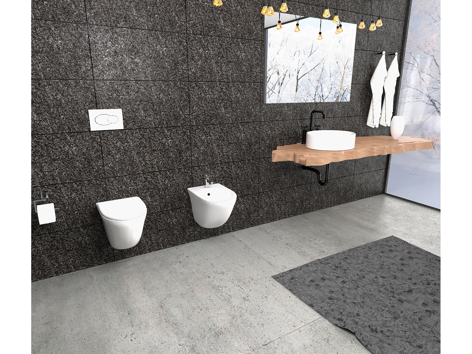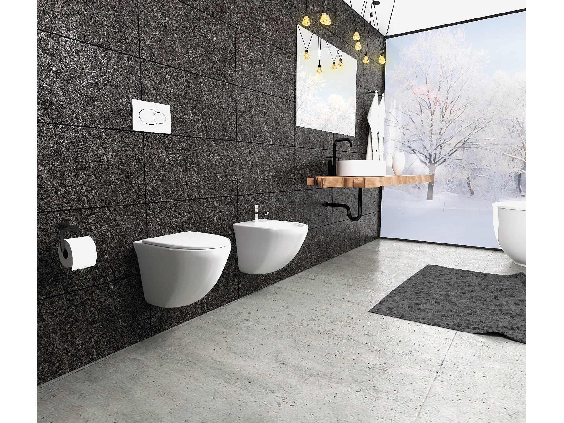 Coppia Sanitari Sospesi Rimless Senza Brida Serie Flipper Coprivaso Soft-Close Incluso