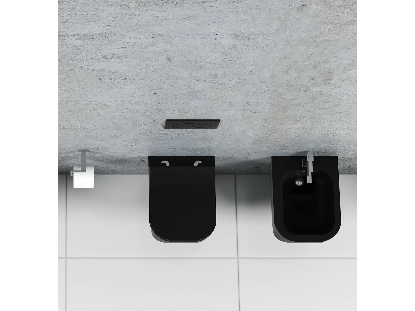 Coppia Sanitari Sospesi Rimless Senza Brida Serie New Edge Nero Opaco Coprivaso Soft-Close Incluso