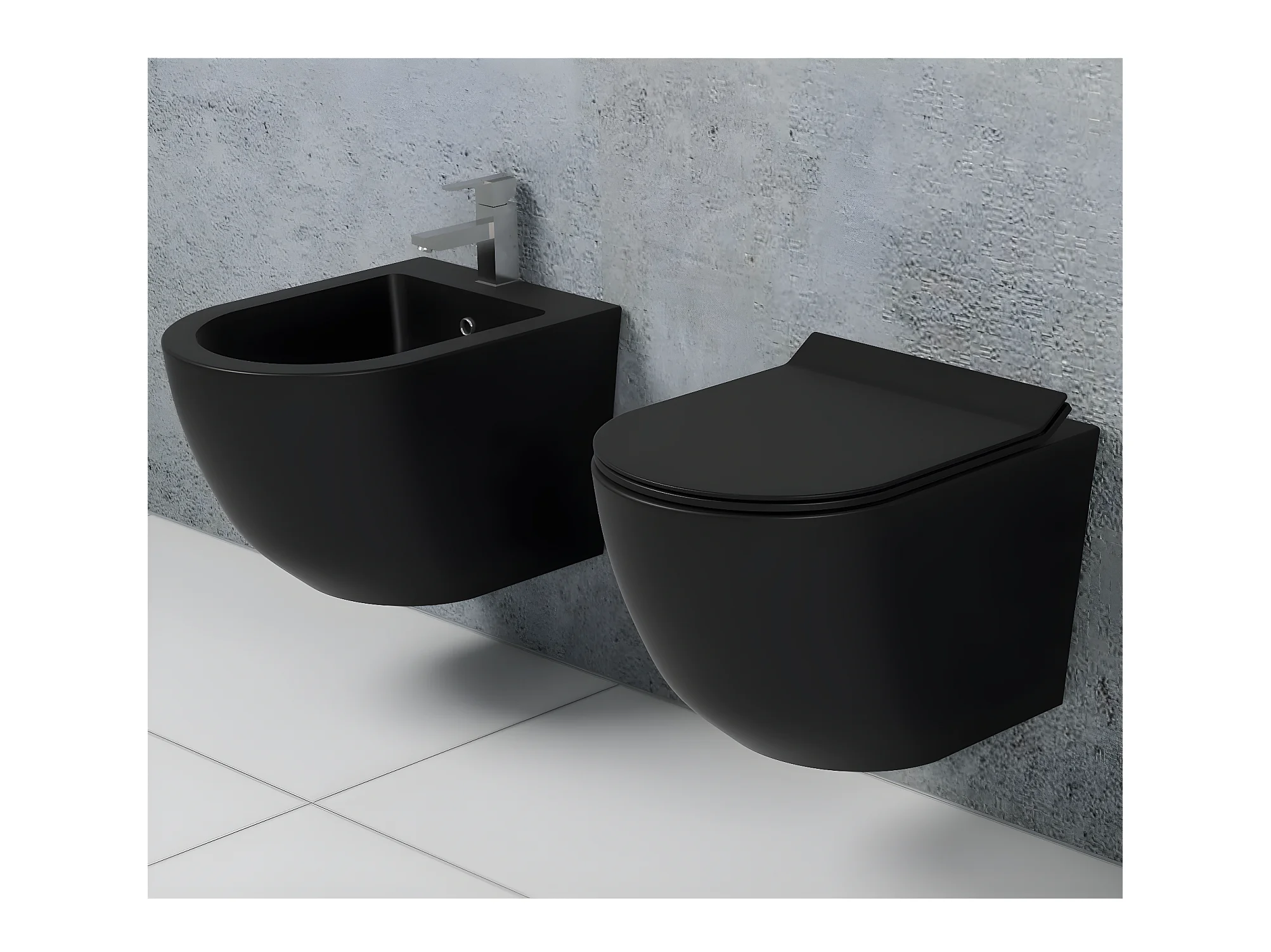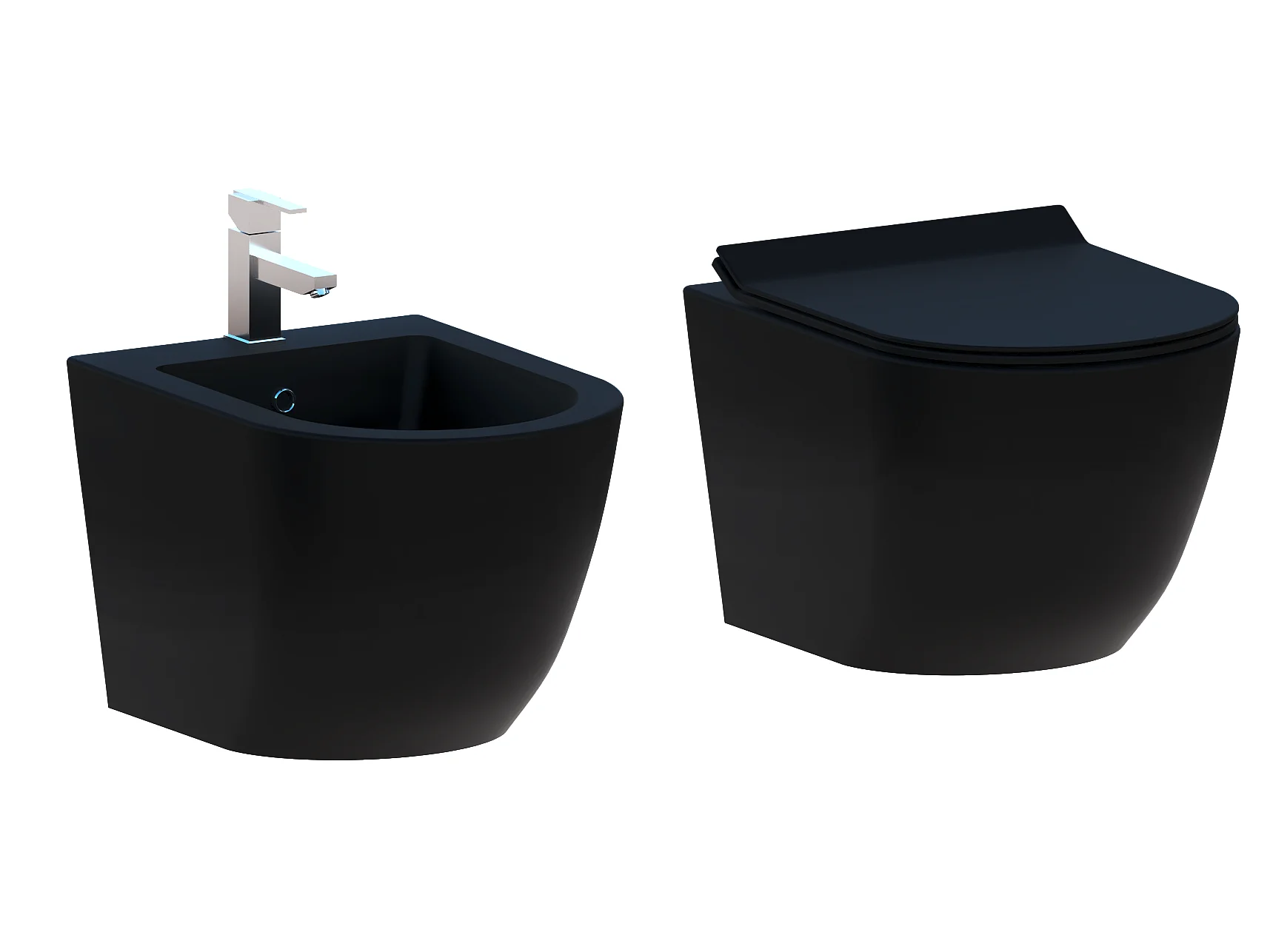 Coppia Sanitari Sospesi Rimless Senza Brida Serie New Edge Nero Opaco Coprivaso Soft-Close Incluso