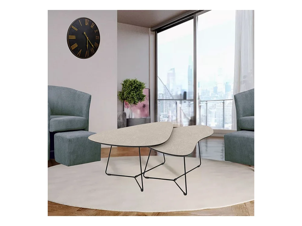 Coppia tavolini da salotto con piano colore cashmere e base metallo nera Tussey