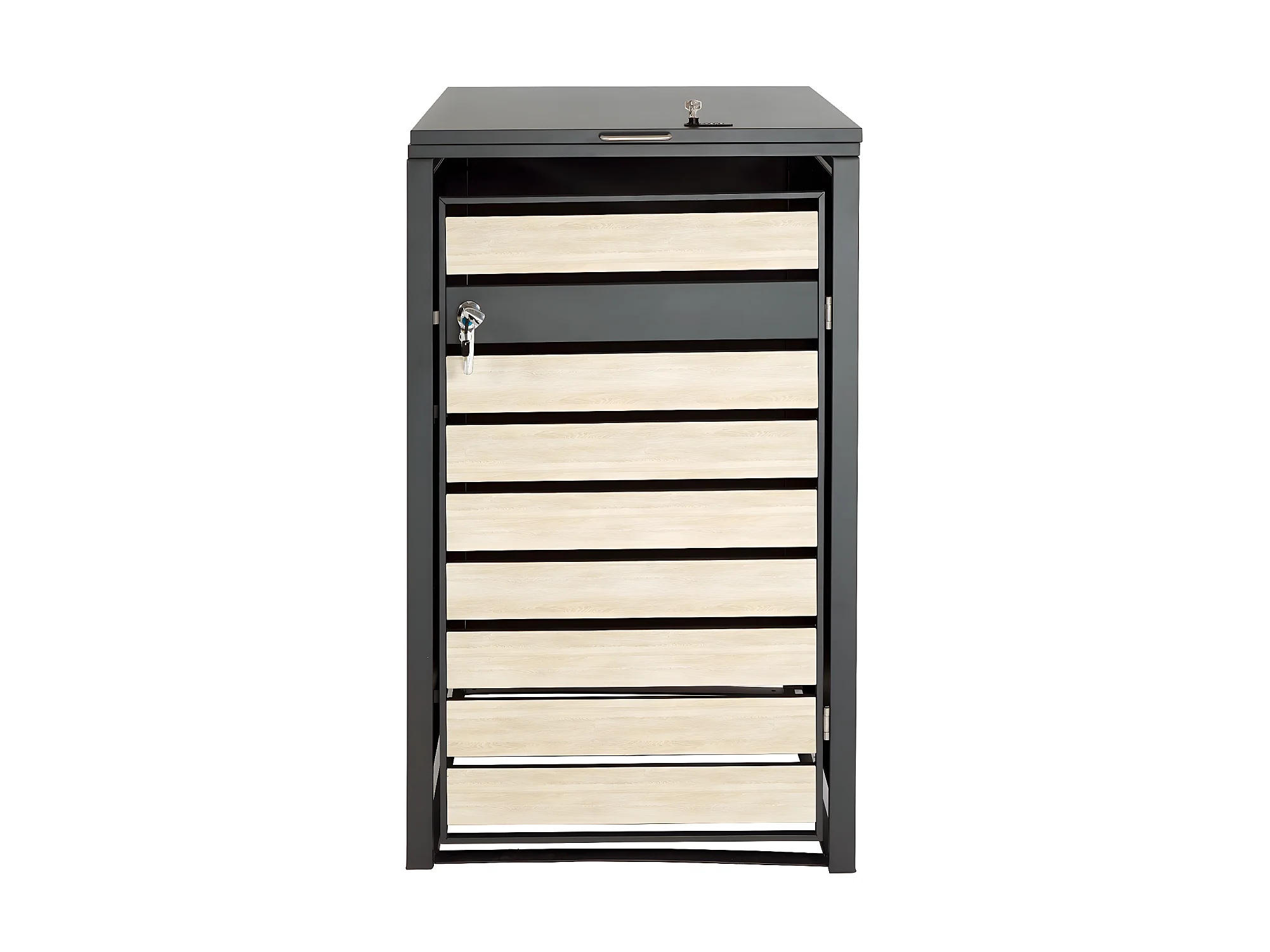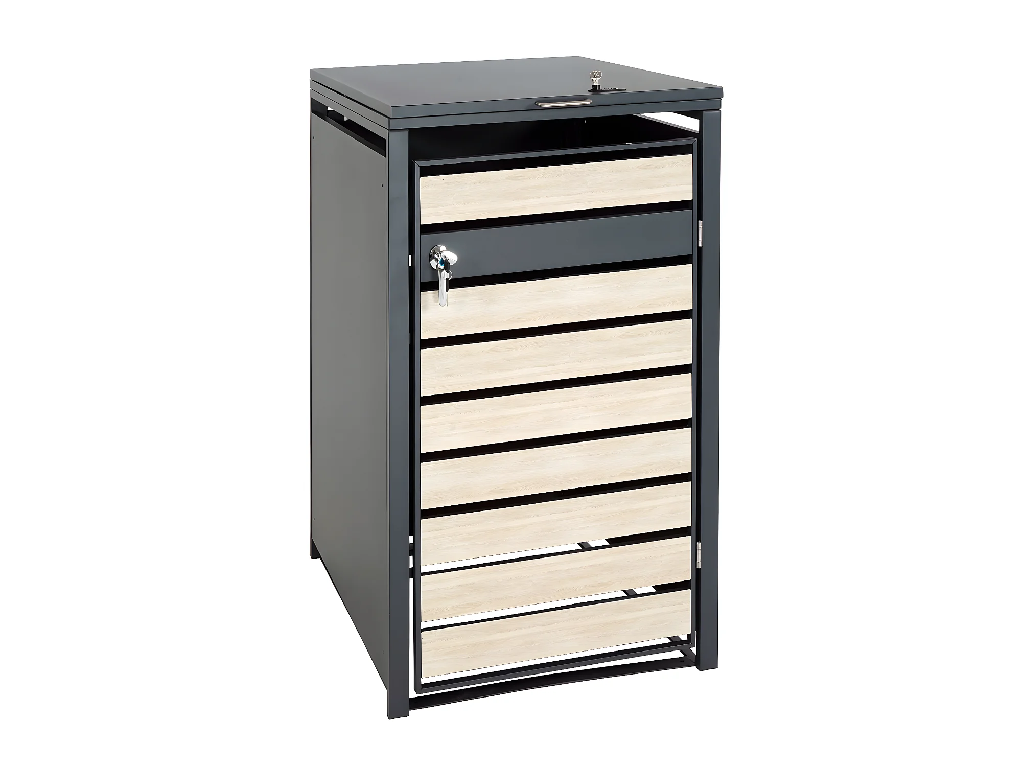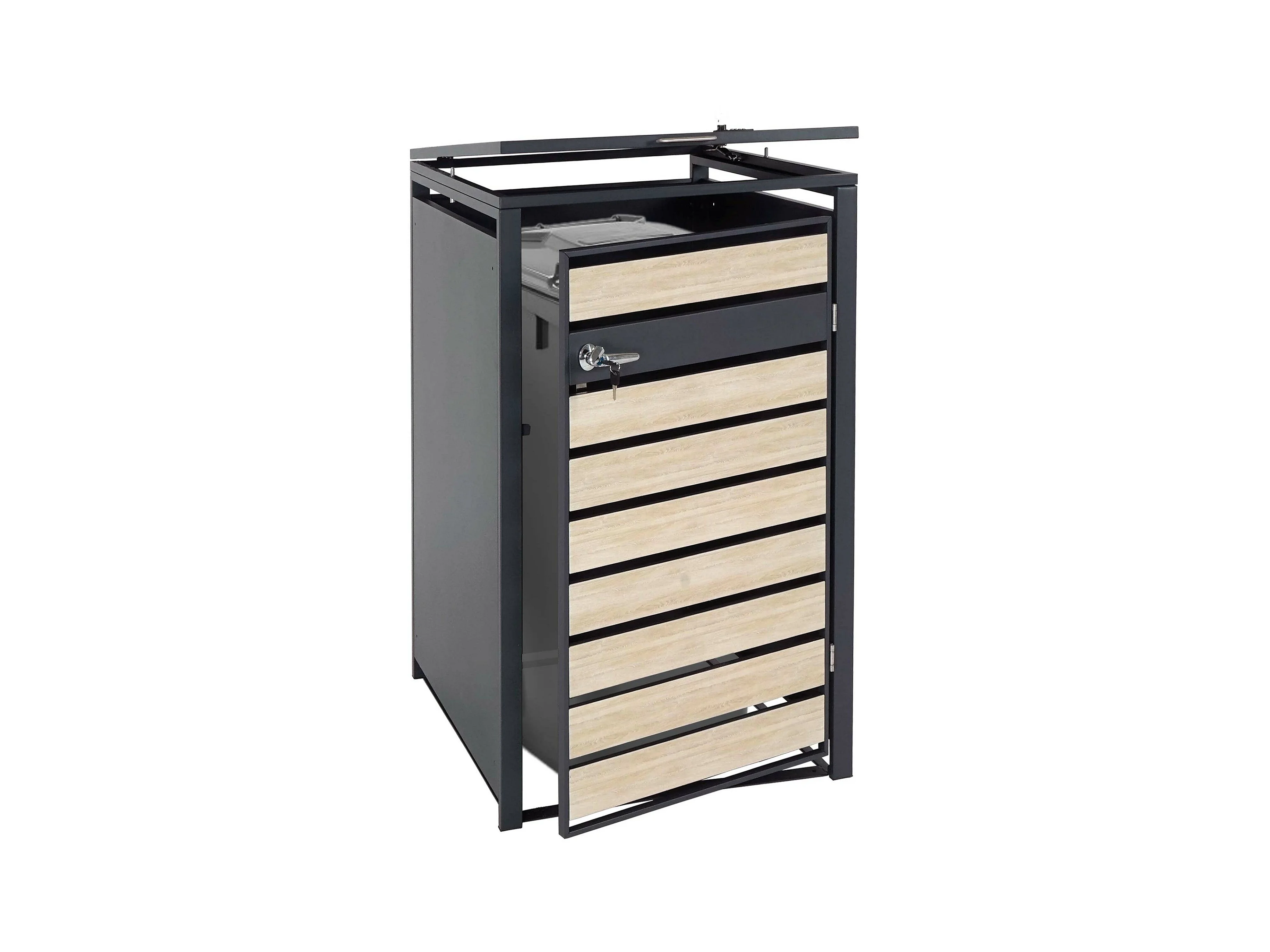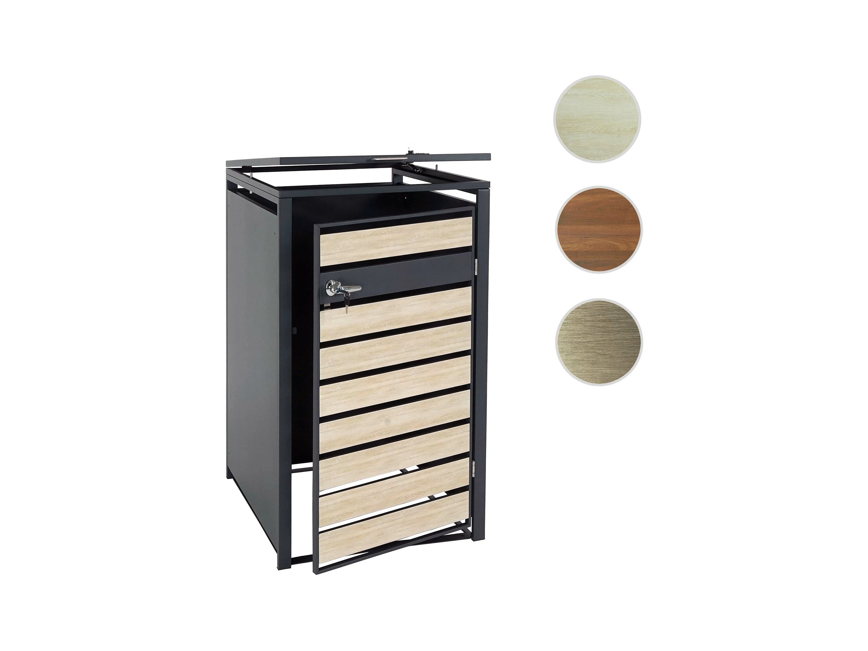 Copribidone box spazzatura rifiuti MCW-J81 80x68x117cm acciaio inox antracite faggio