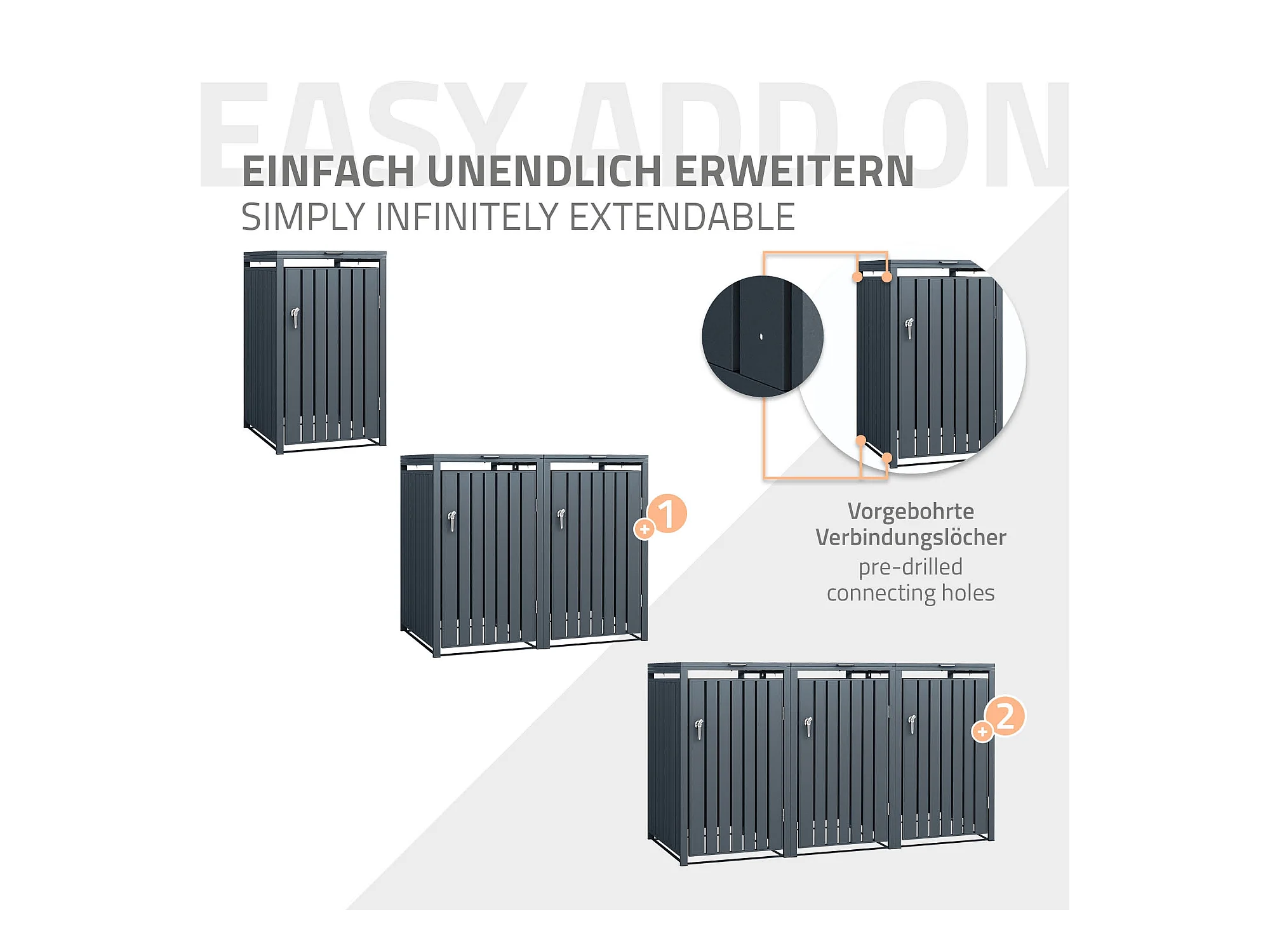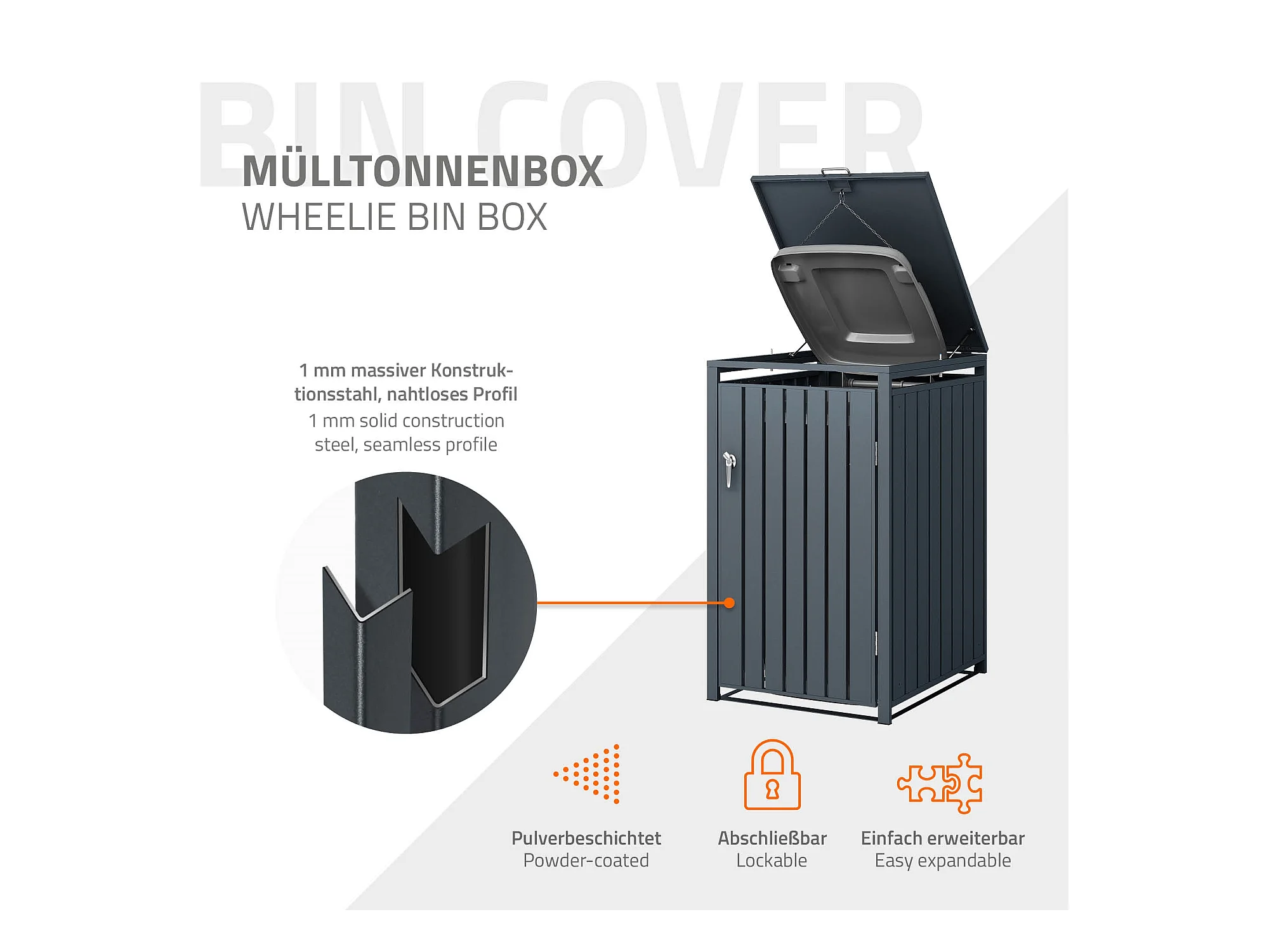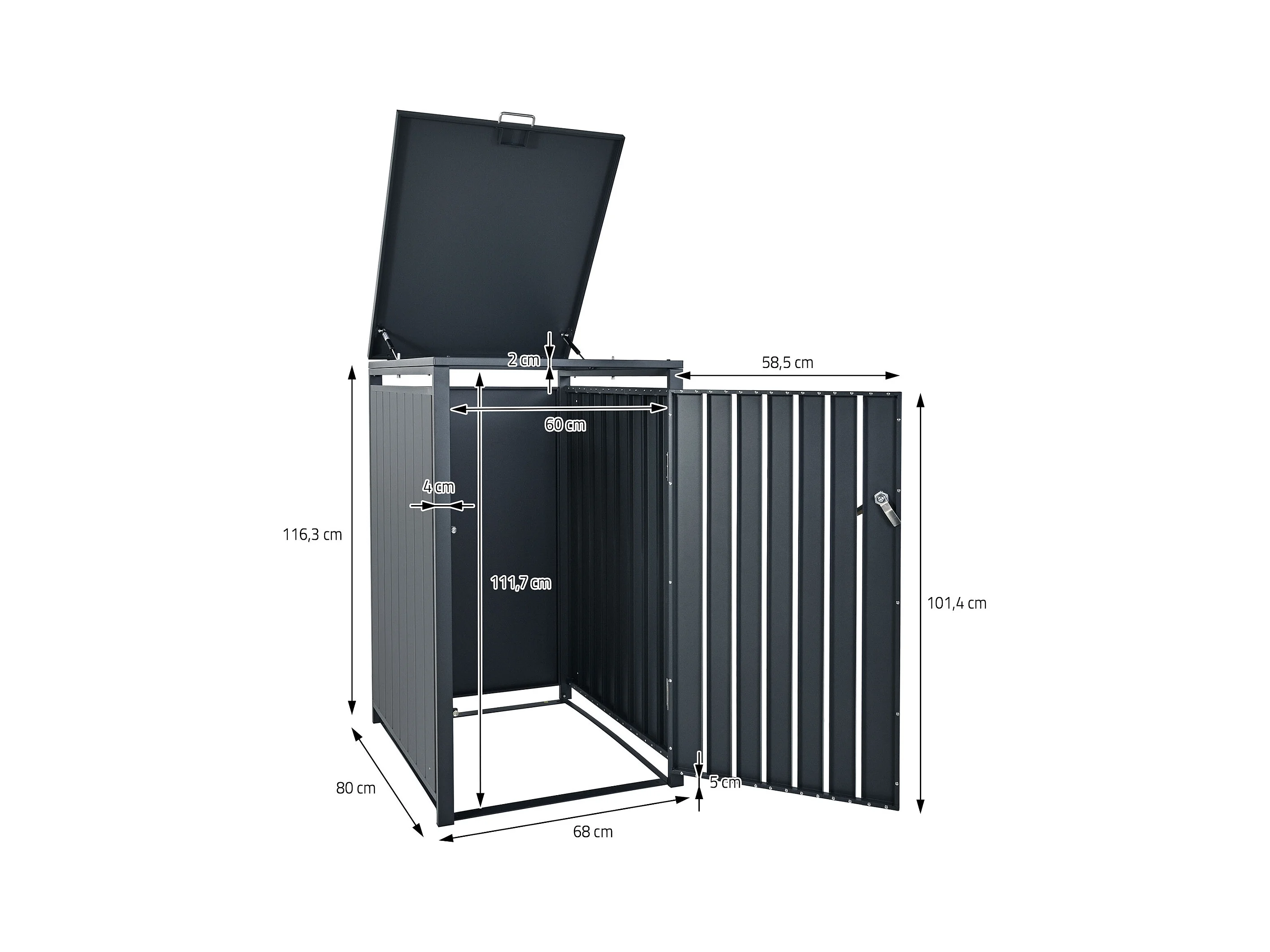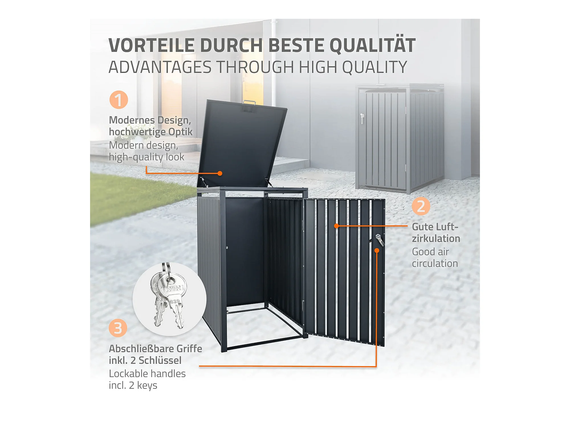 ML-Design Copribidone per 1 bidone da spazzatura 240L 68x80x116,3cm antracite acciaio resistente alle intemperie contenitore per rifiuti con serratura