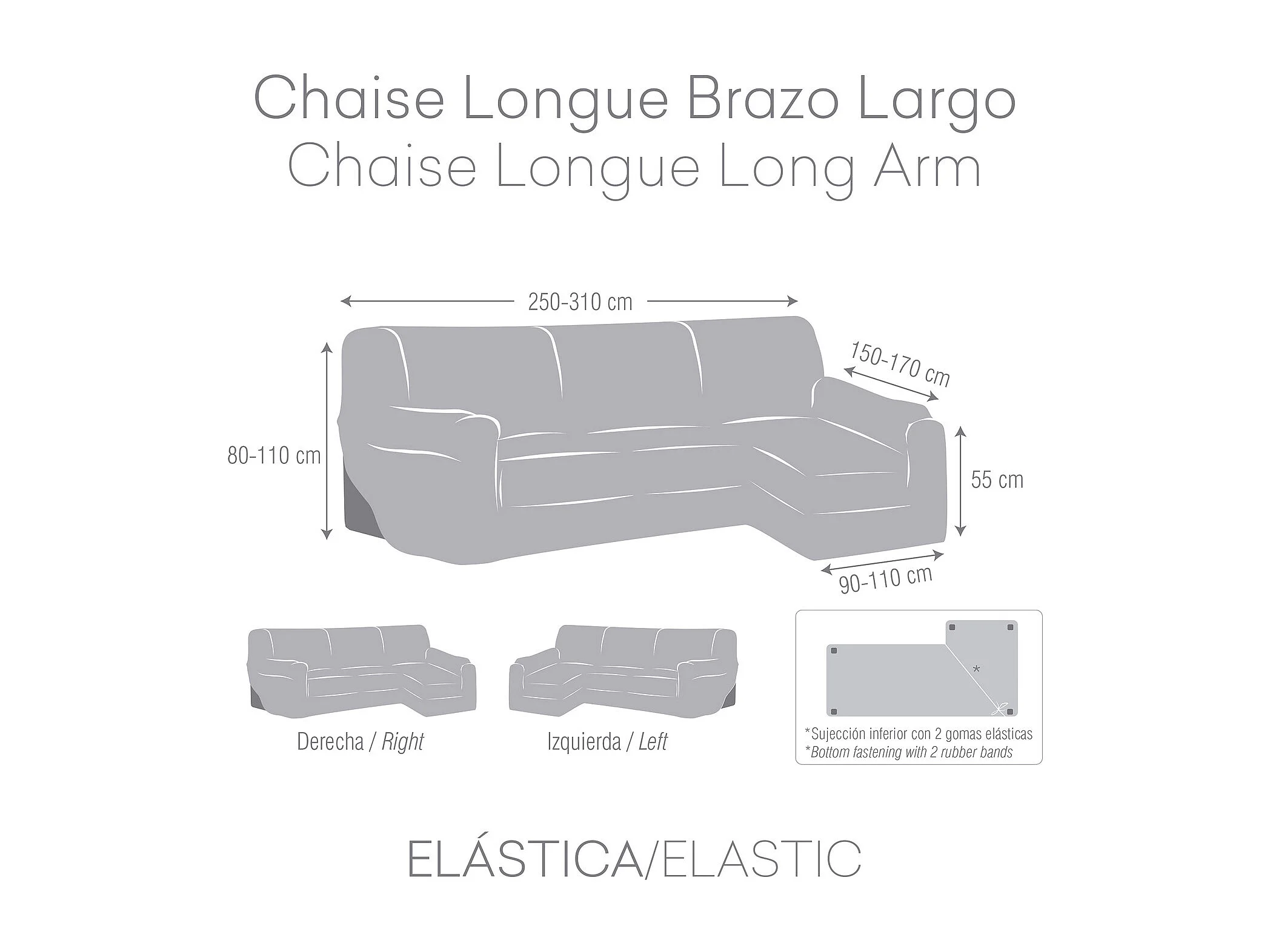 Copridivano penisola sinistra grigio Troya elastico 250-310 bracciolo lungo
