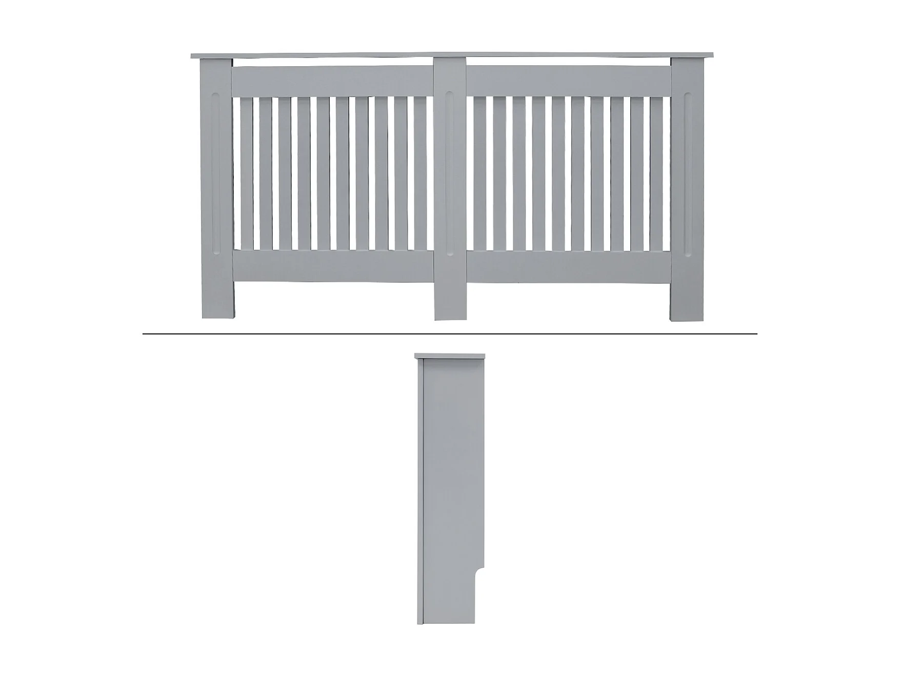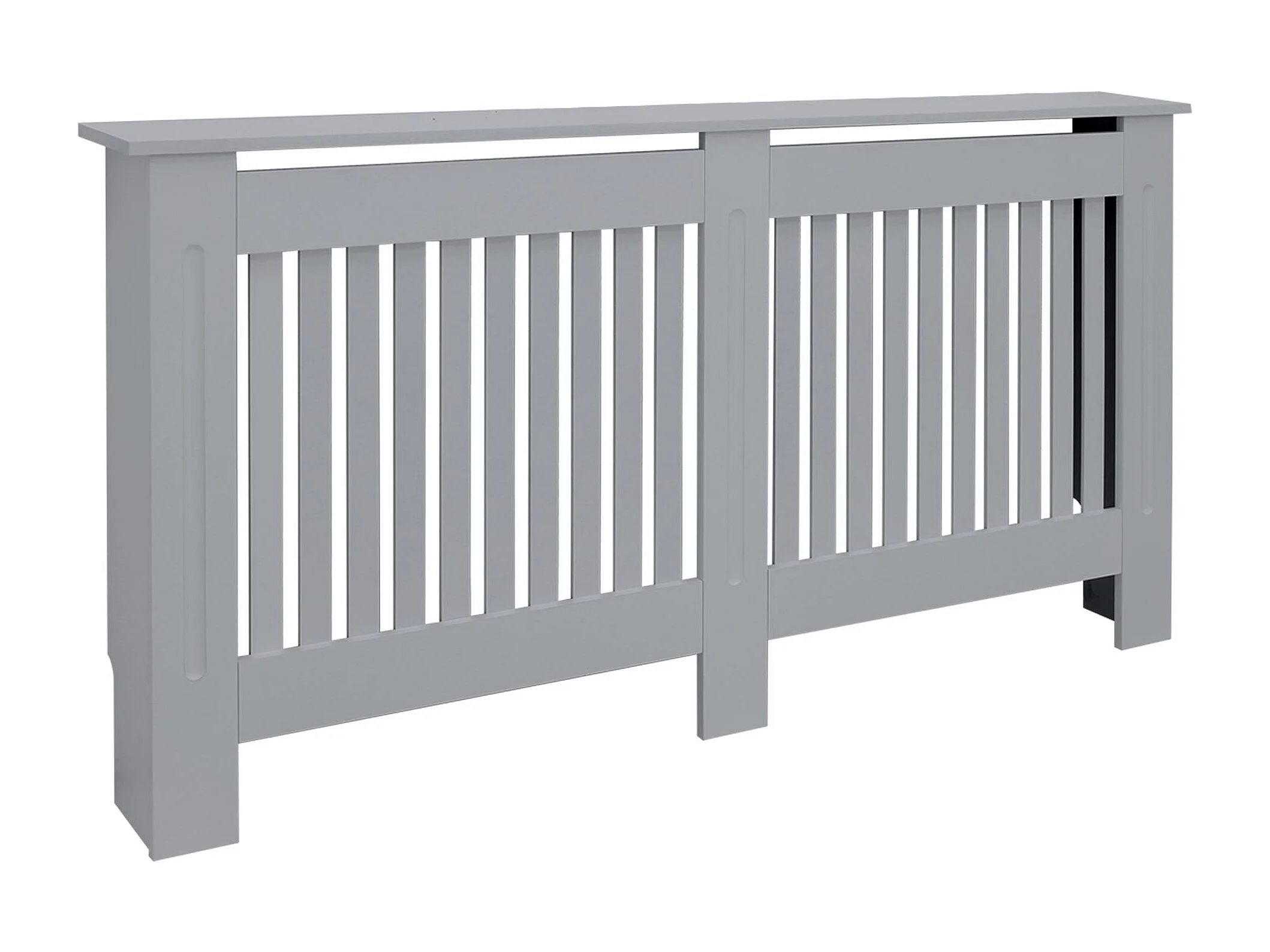 ECD Germany Copritermosifone in legno MDF laccato grigio 152x19x82 cm stile rustico con piano d'appoggio copertura protettiva per radiatore