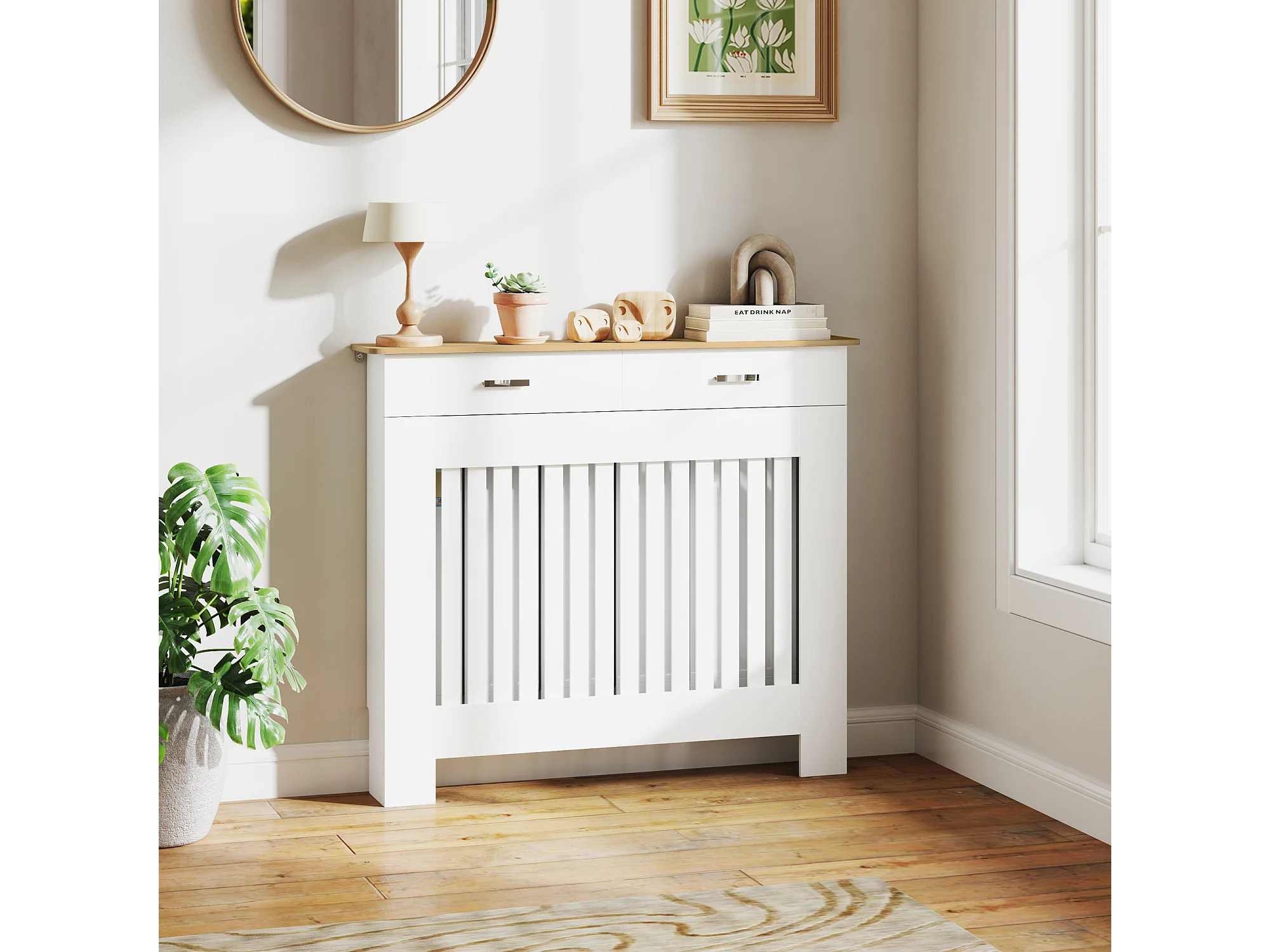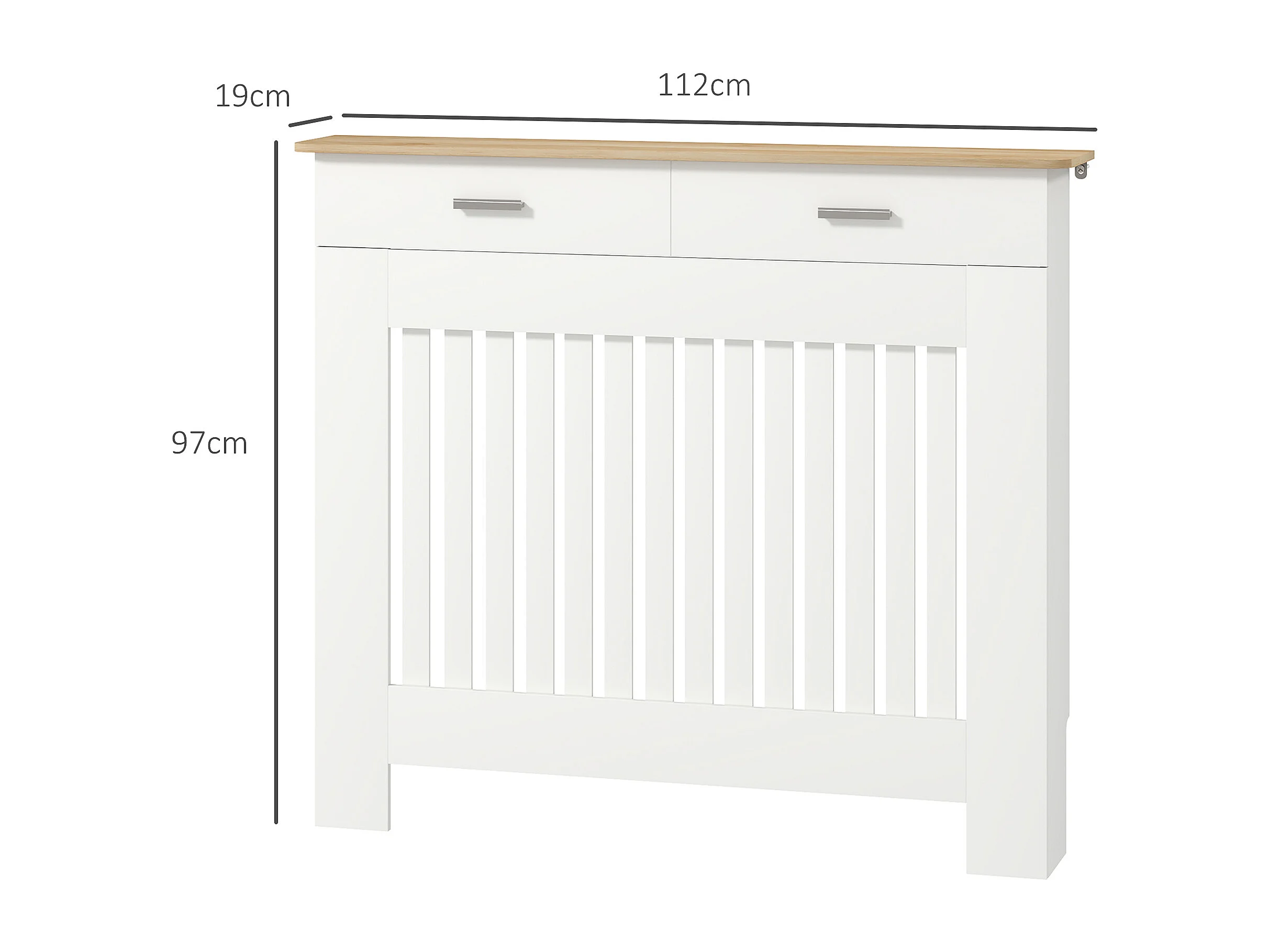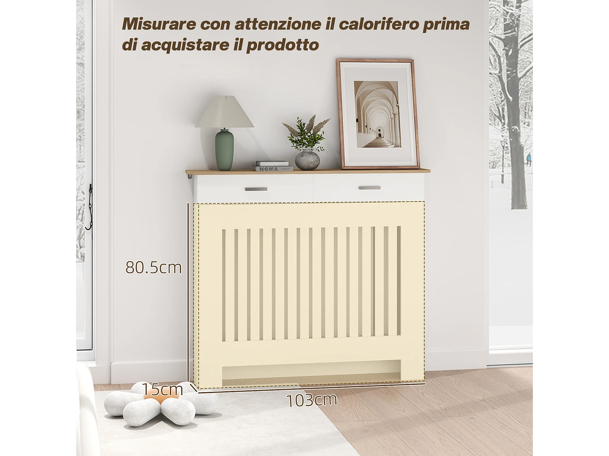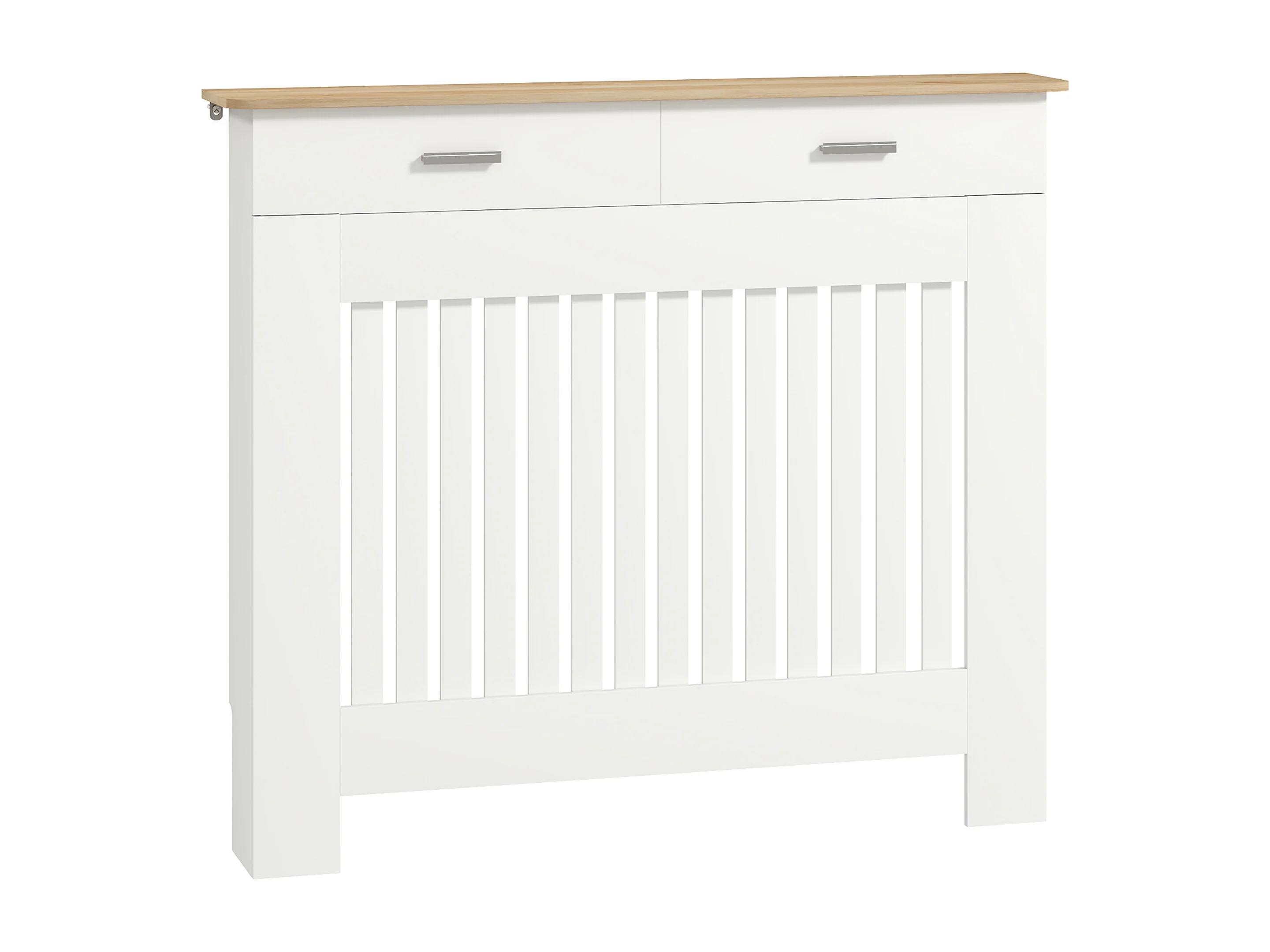 Copritermosifone a doghe antiribaltamento con cassetto in legno bianco