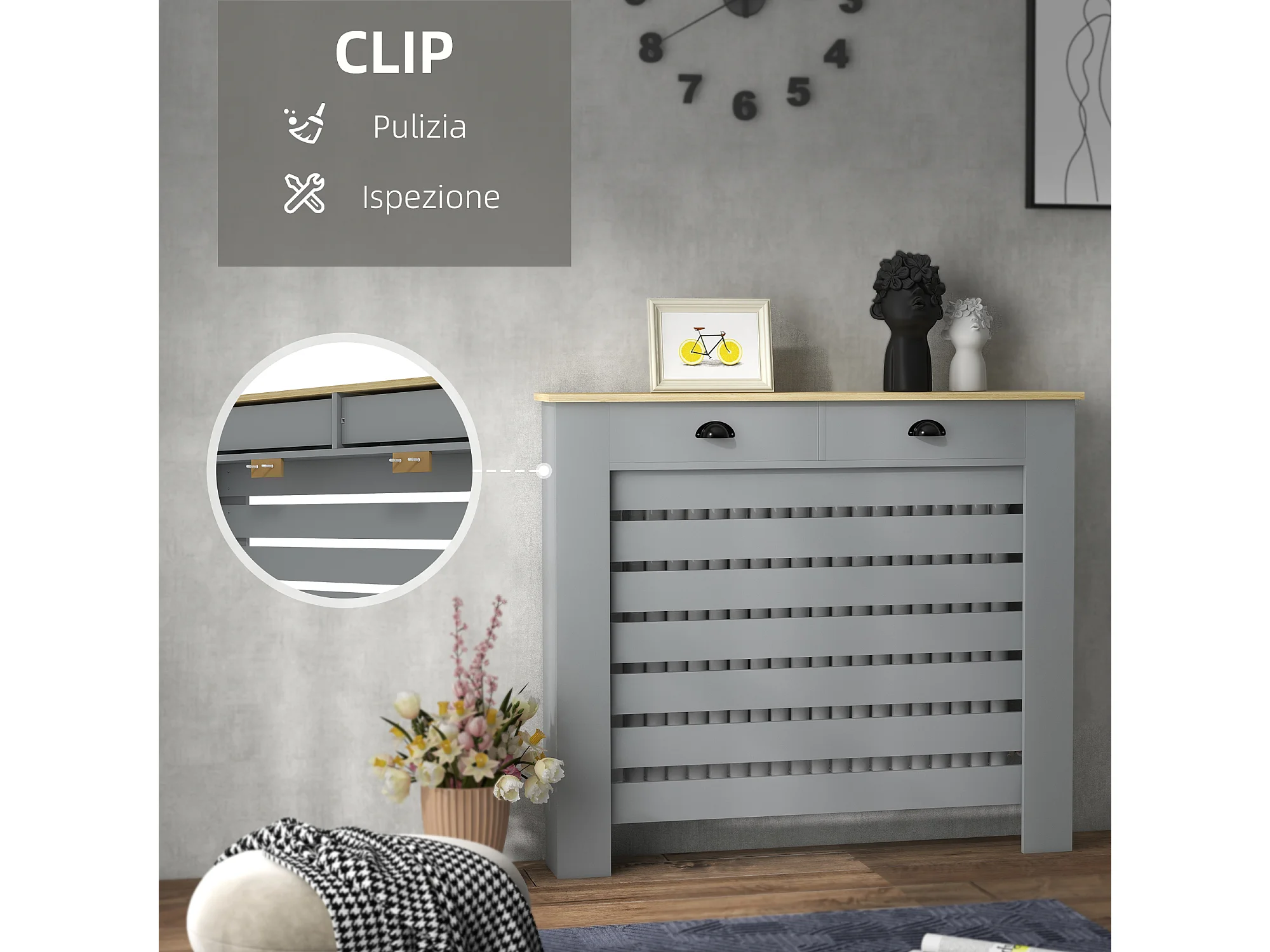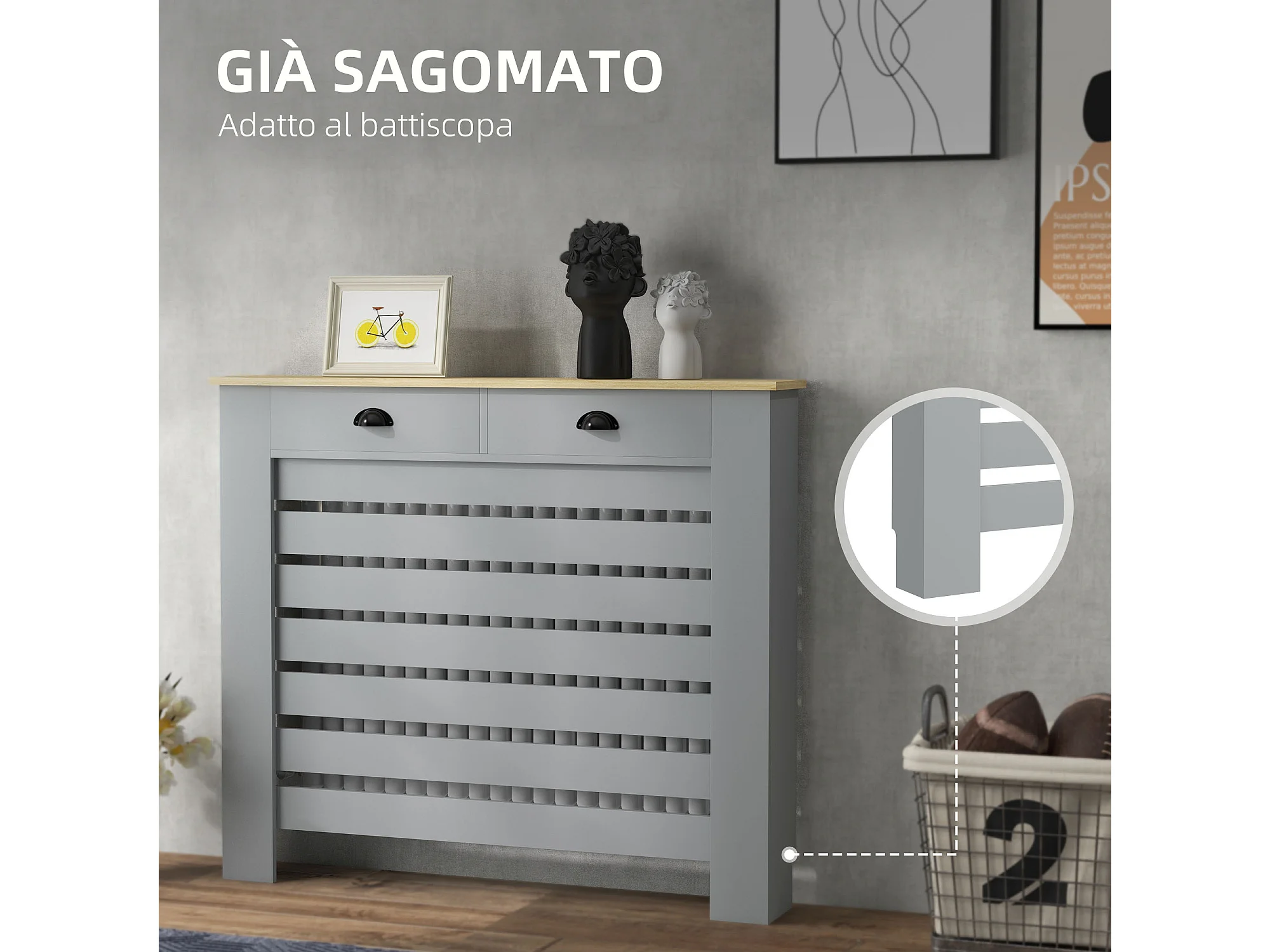 Copritermosifone a doghe con 2 cassetti in mdf 111x19x95.5cm grigio