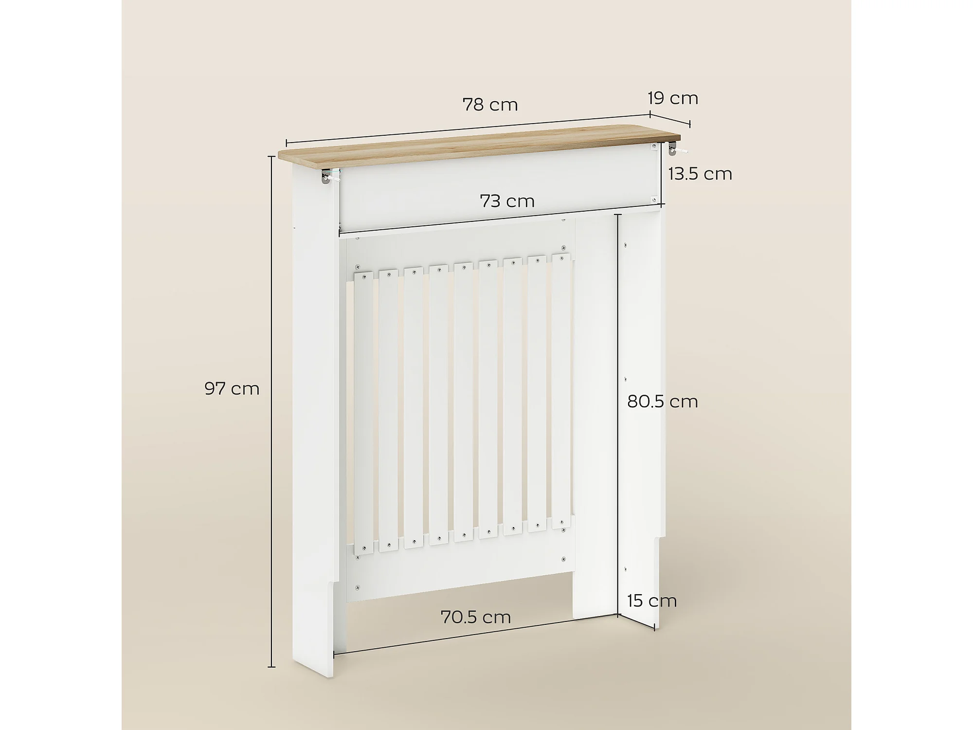 Copritermosifoni a doghe con ripiano in legno bianco 152x19x81 cm