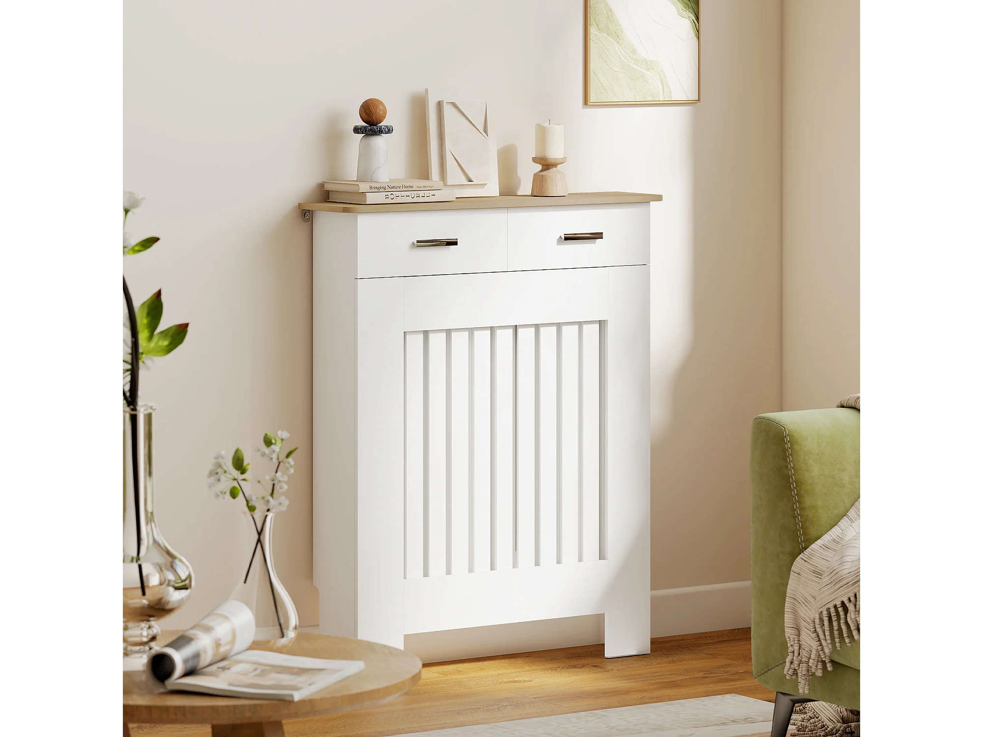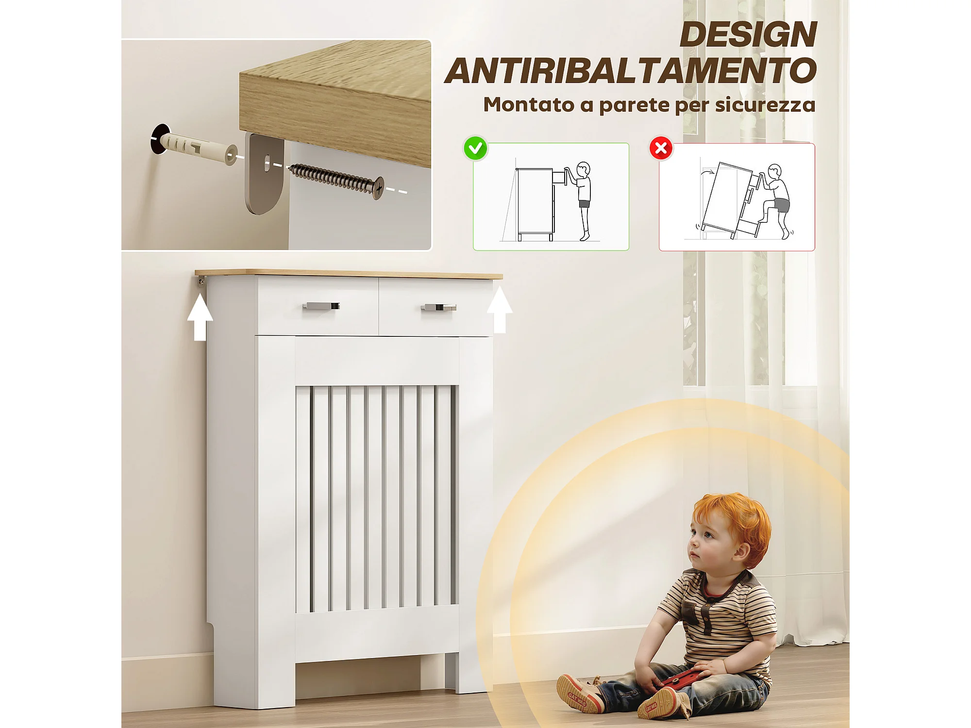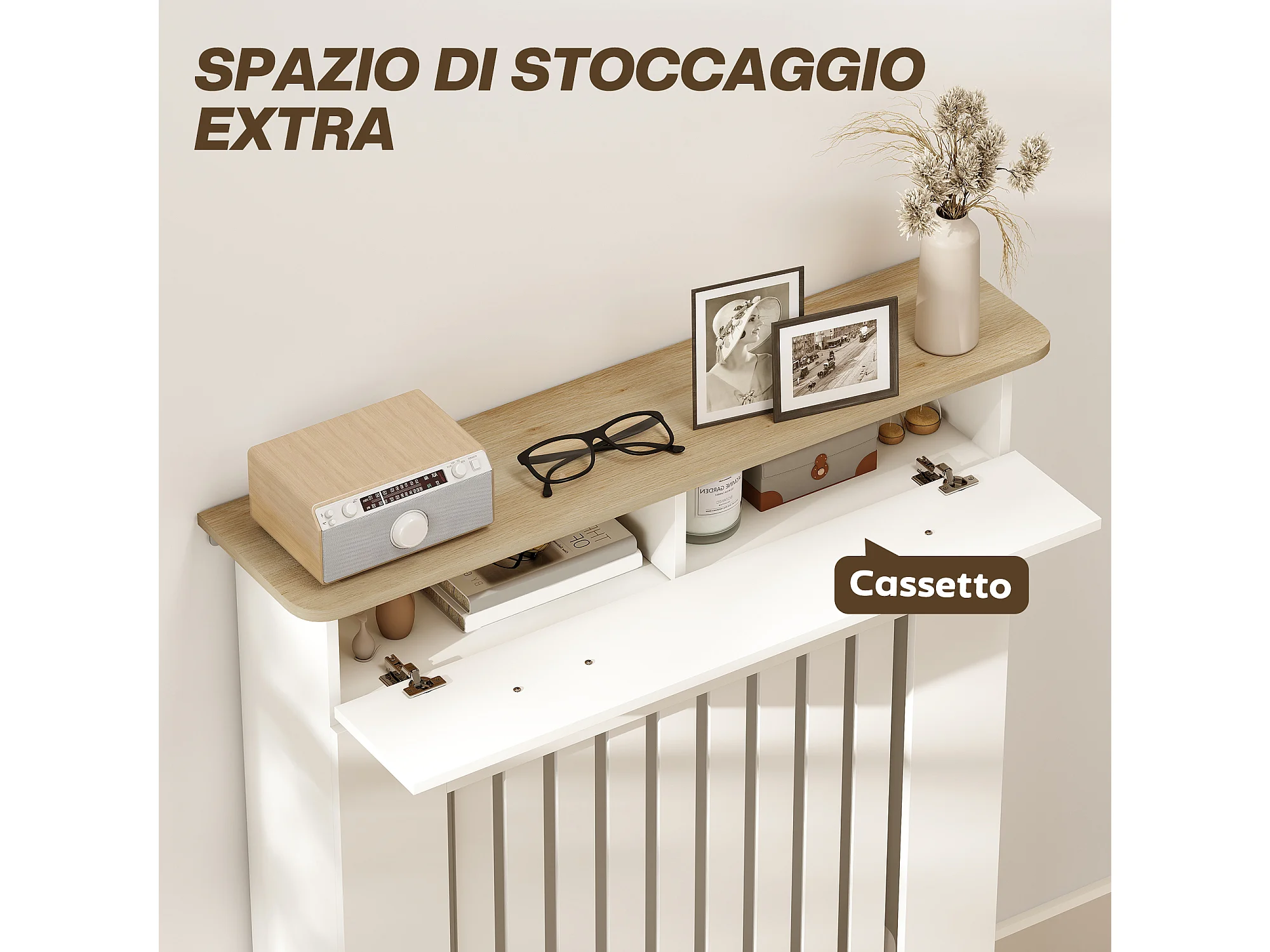 Copritermosifone a doghe con cassetto in legno 78x19x97 cm bianco
