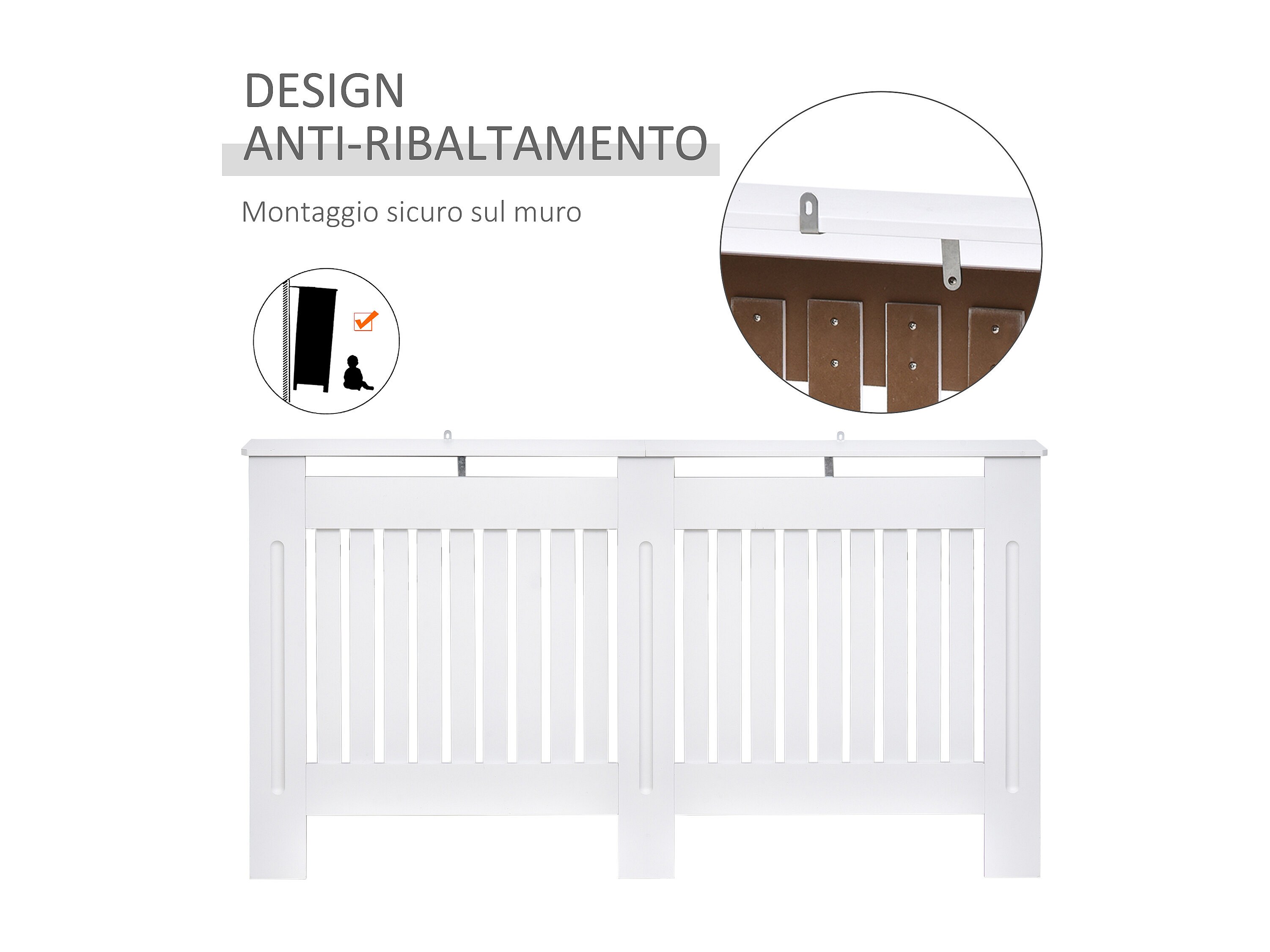 Copritermosifone a doghe in mdf 152x19x81 cm bianco
