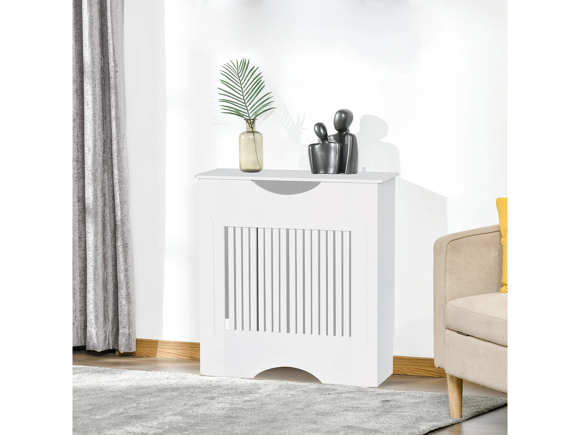 Copritermosifone a doghe per la casa in mdf e acciaio bianco