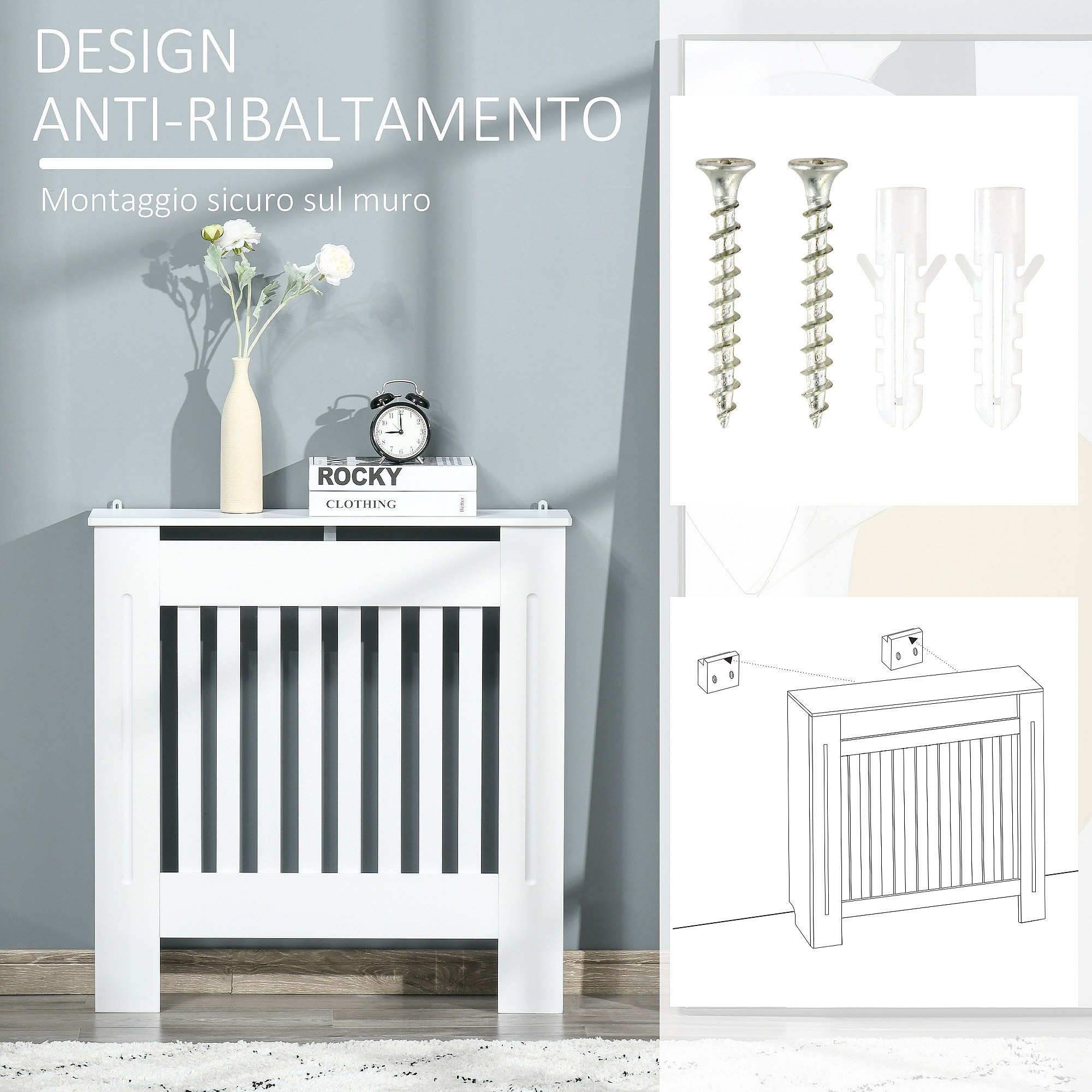 Copritermosifone in legno mdf bianco con doghe verticali bianco