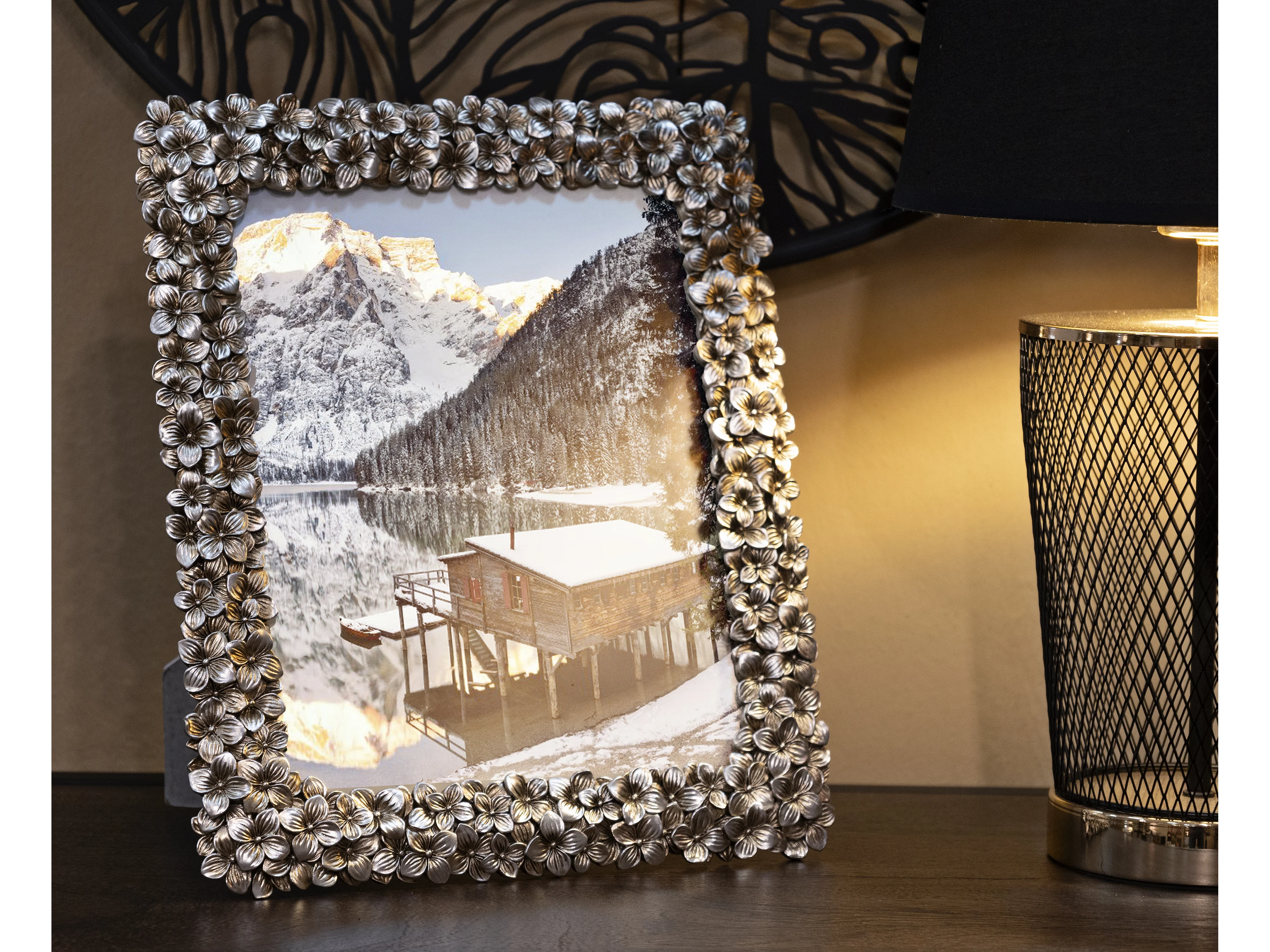 Cornice in resina argentata con fiori cm 26,5x2x31,8