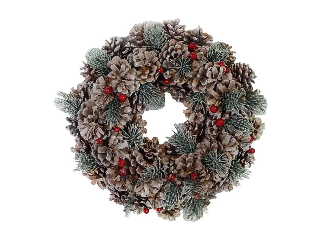 Coroncina glitter con bacche e pigne naturale cm ø45