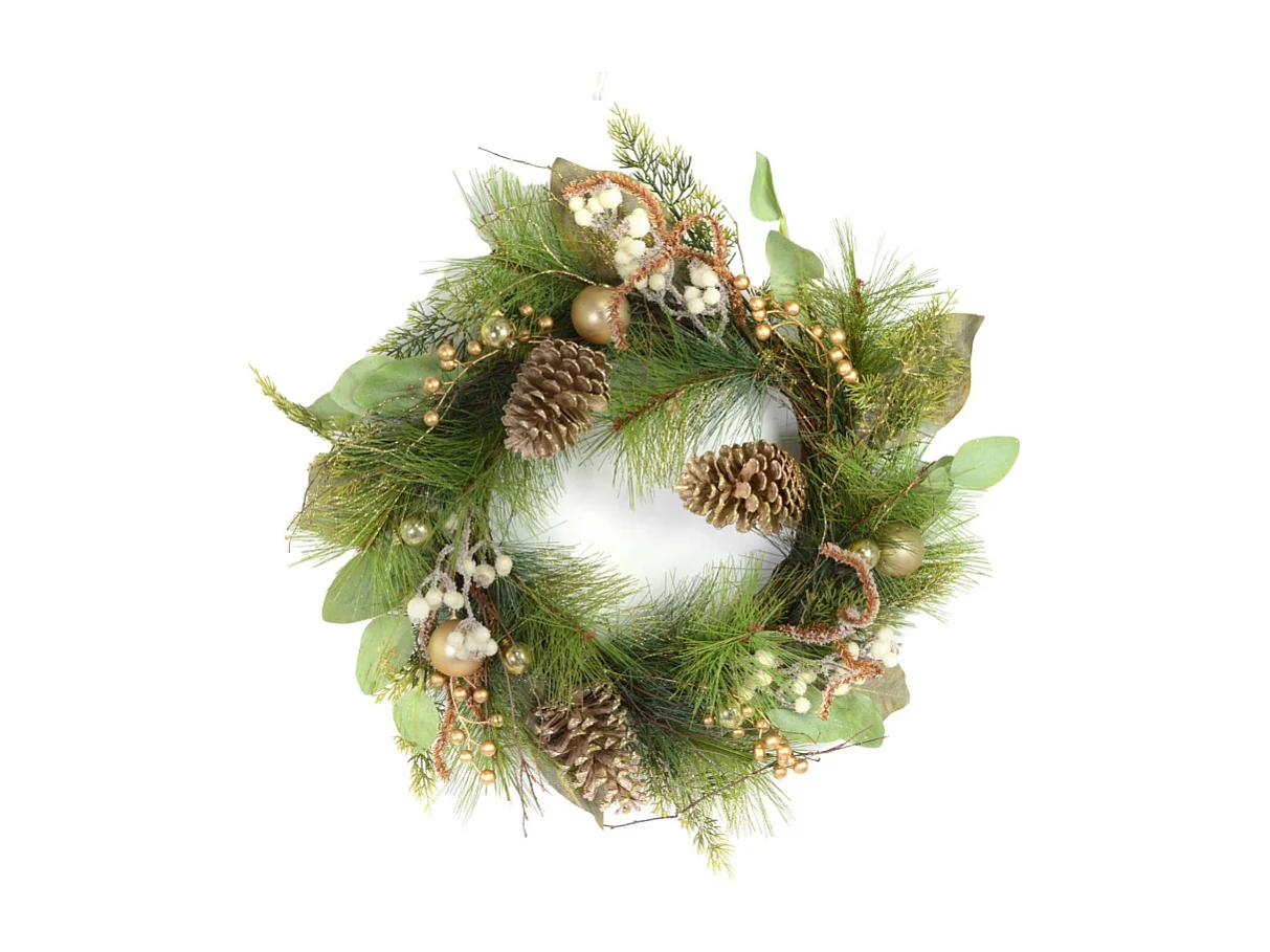 Coroncina oro con pigne verde cm ø60