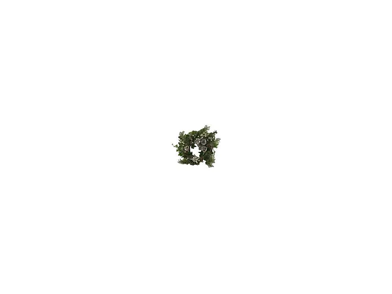 Coroncina plastica con pigne e palline bianco verde cm ø40x9