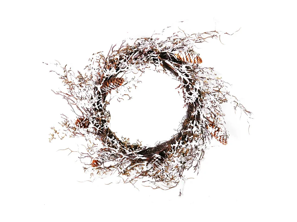 Coroncina plastica pino innevata con pigne cm 60x60h13