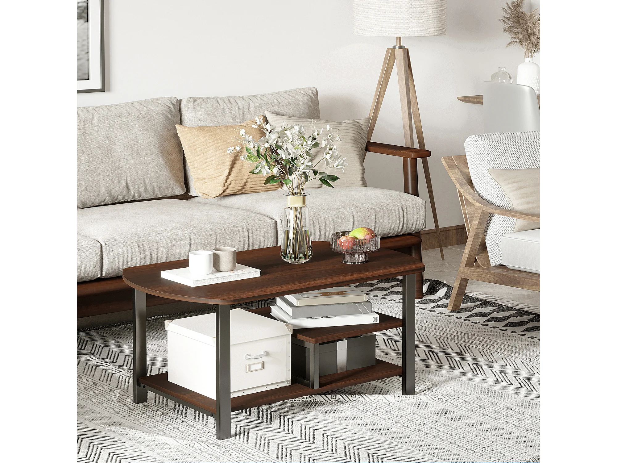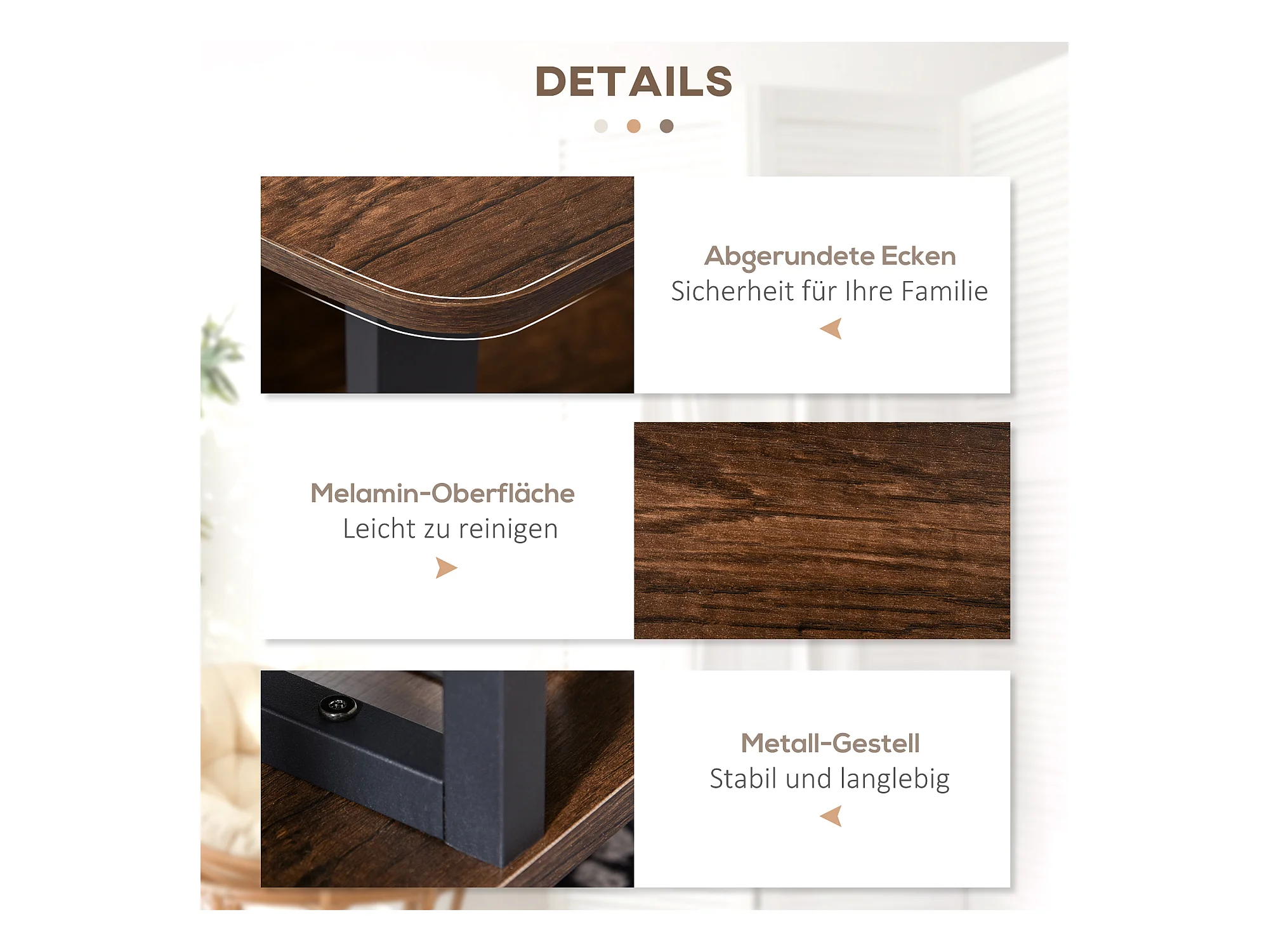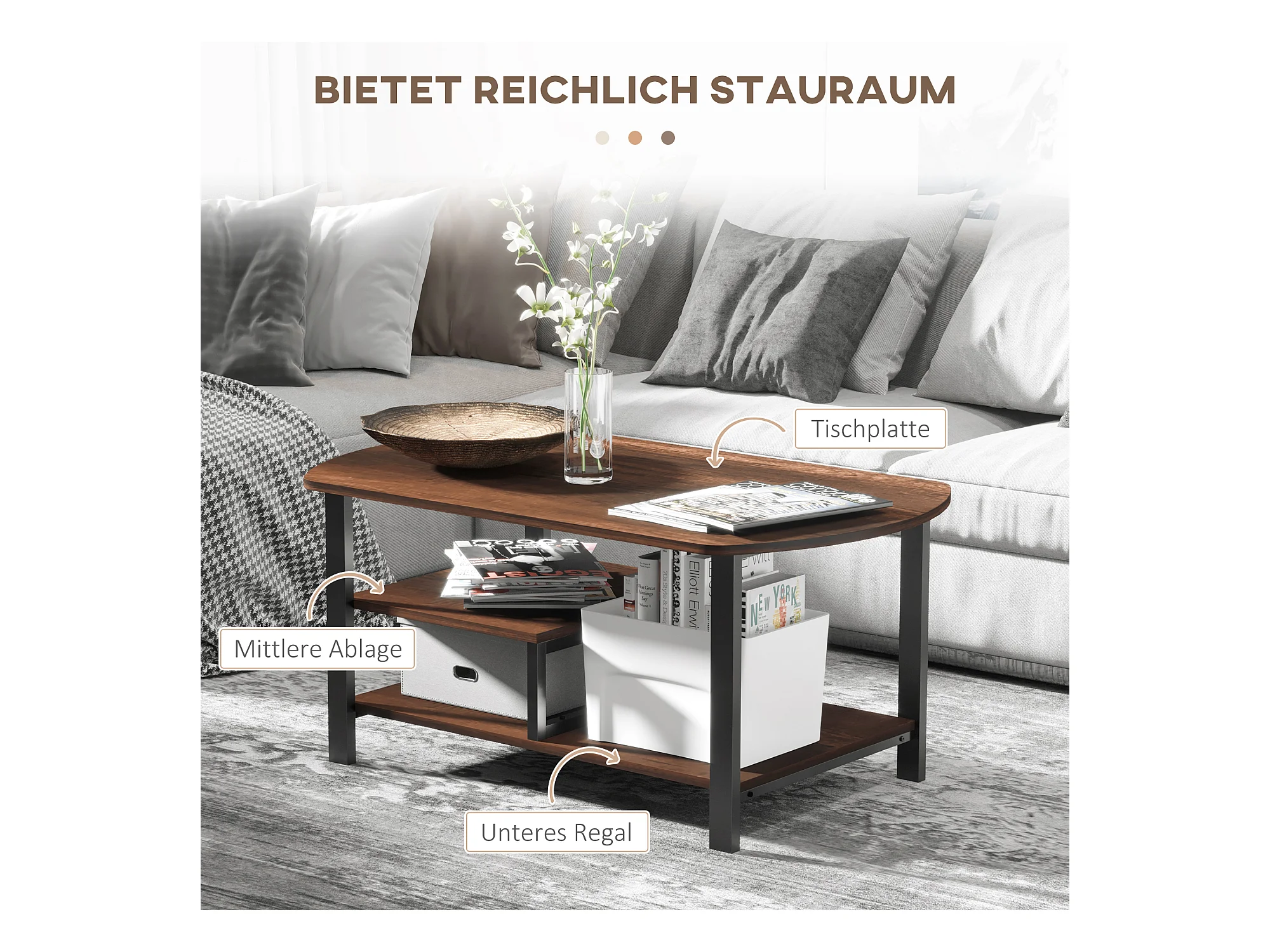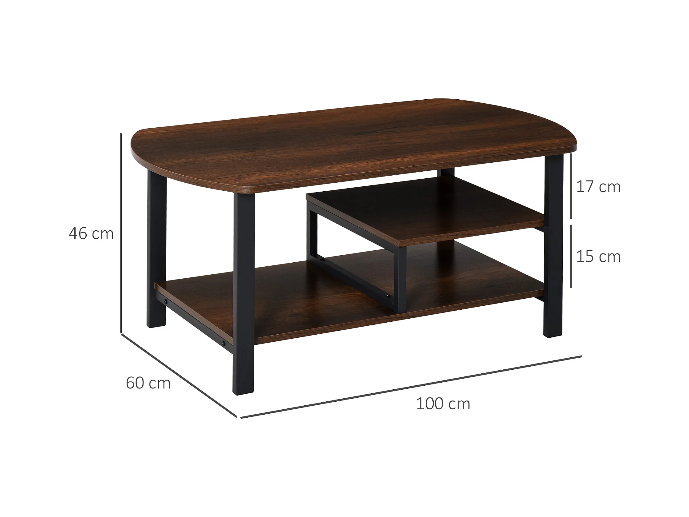 Couchtisch mit Ablagen, Retro-Design, Spanplatte und Stahl, braun (100x60x46 cm)