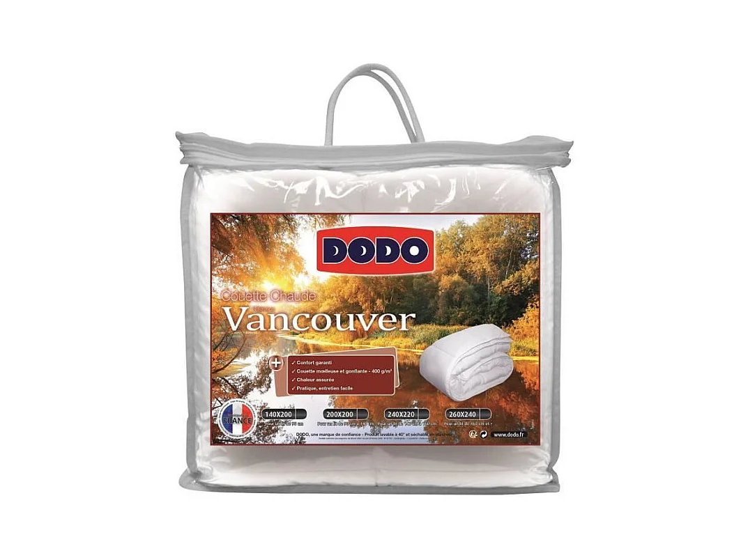 Piumone caldo 400g/m² VANCOUVER 200x200 cm bianco - Fibre Cave in Poliestere - Produzione Francese