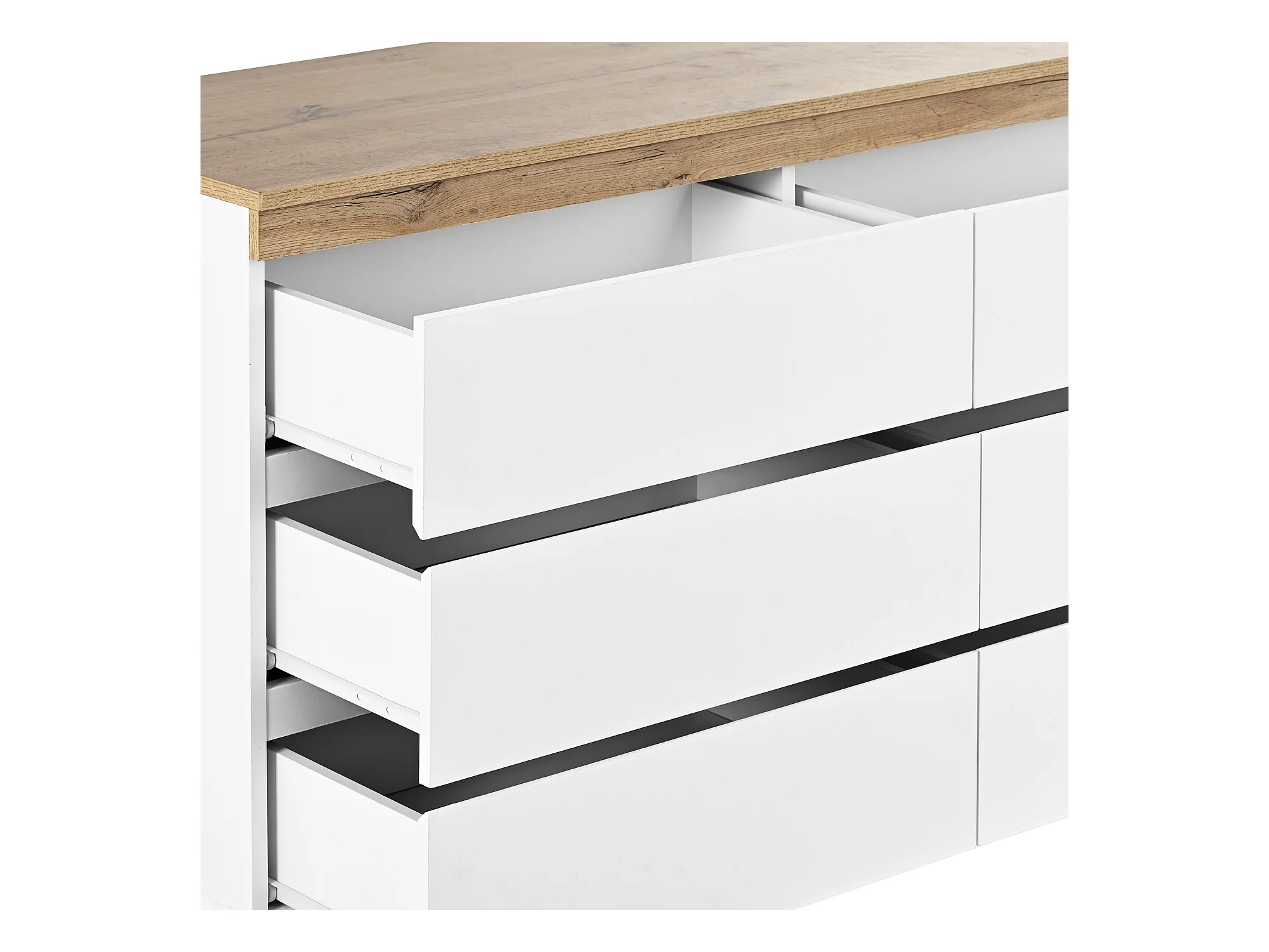 Credenza 110x40x67,5cm con 6 cassetti, piano impiallacciato rovere, corpo bianco
