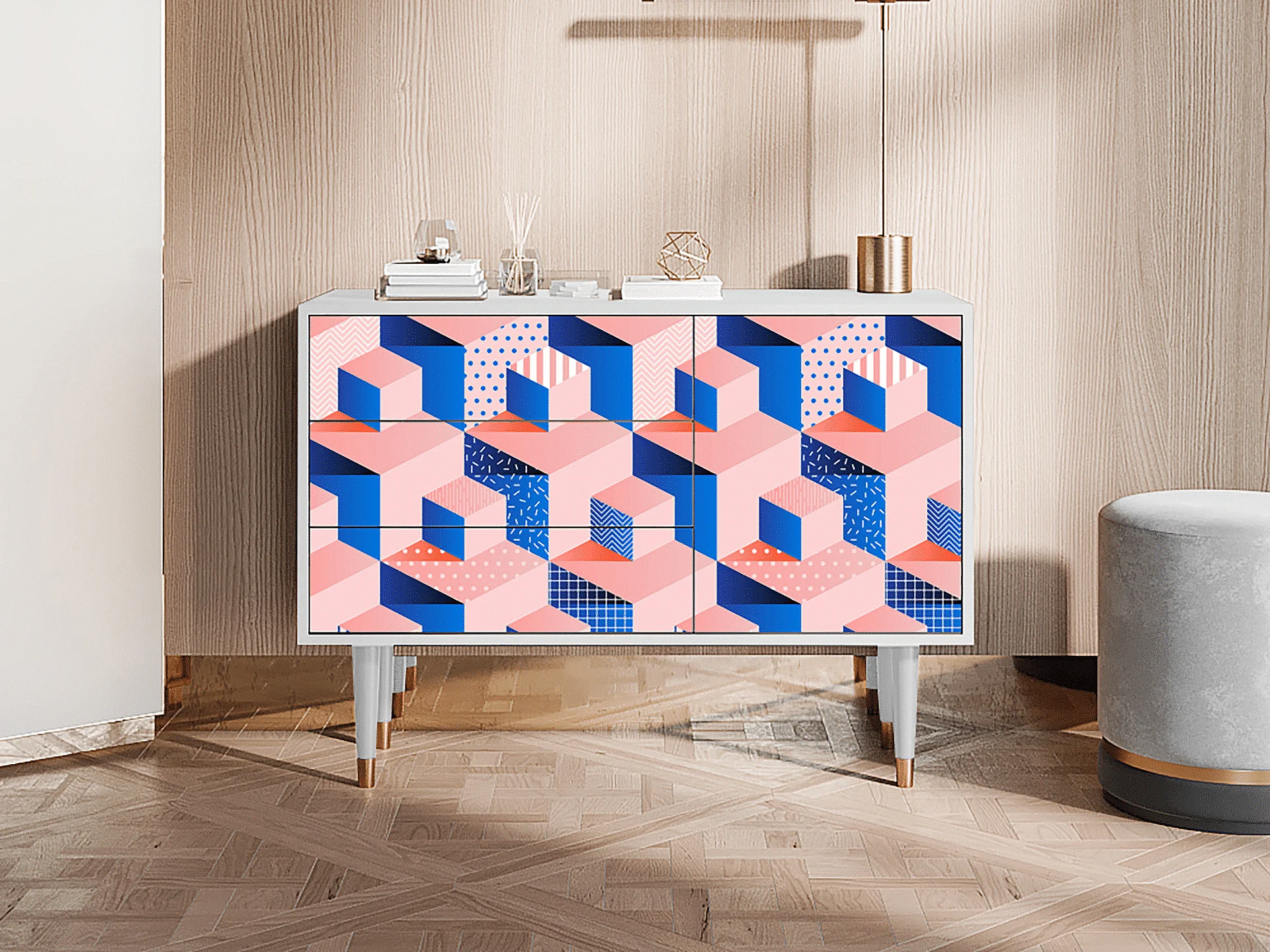 Credenza - 115х84х41 cm - S3 - Pinky Squares, Bianco