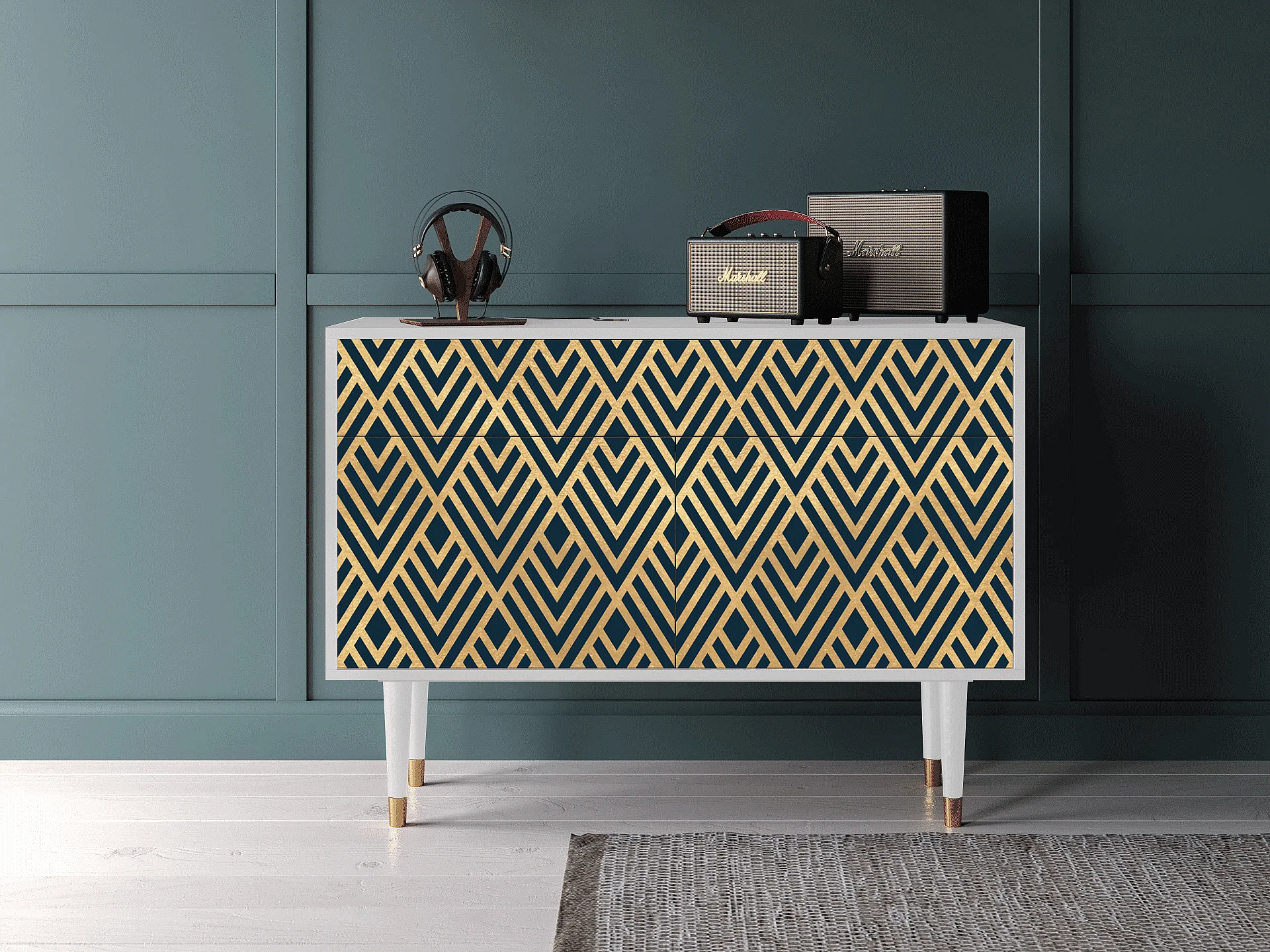 Credenza - 115x85x48 cm - BS4 - Egypt Triangles, Bianco
