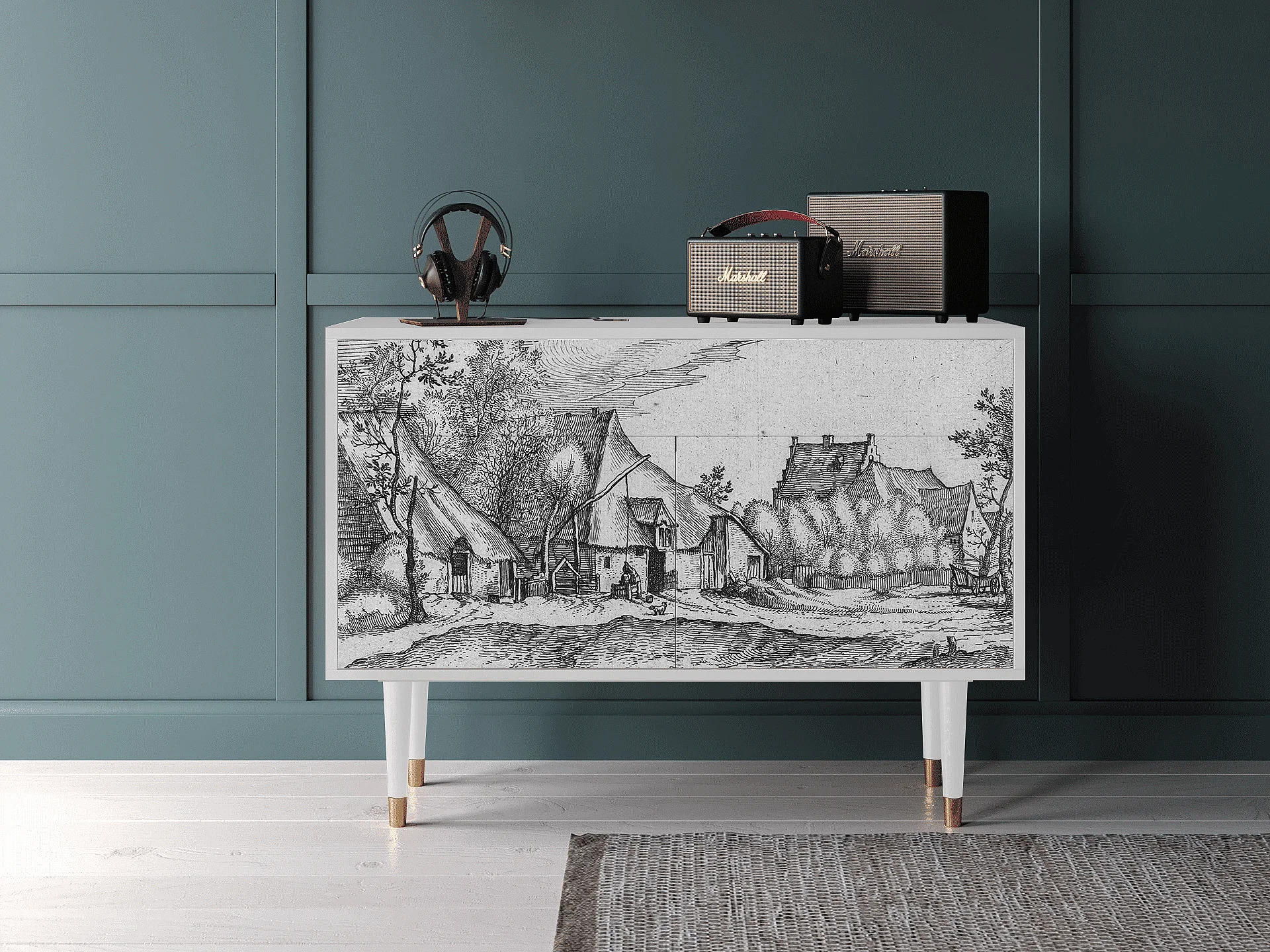 Credenza - 115x85x48 cm - BS4 - Farms in a Village, Bianco