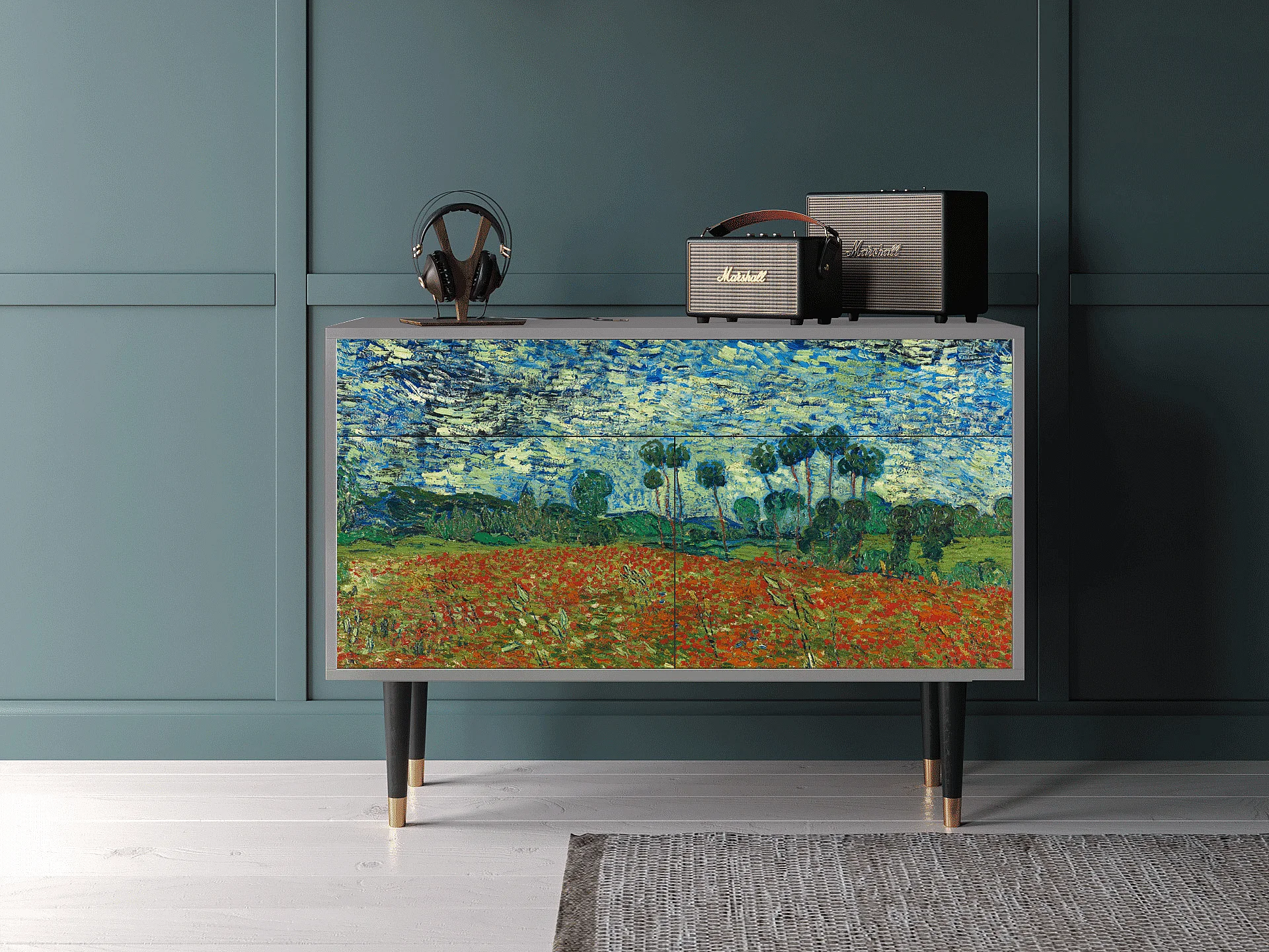 Credenza - 115x85x48 cm - BS4 - Poppy field by van Gogh, Grigio