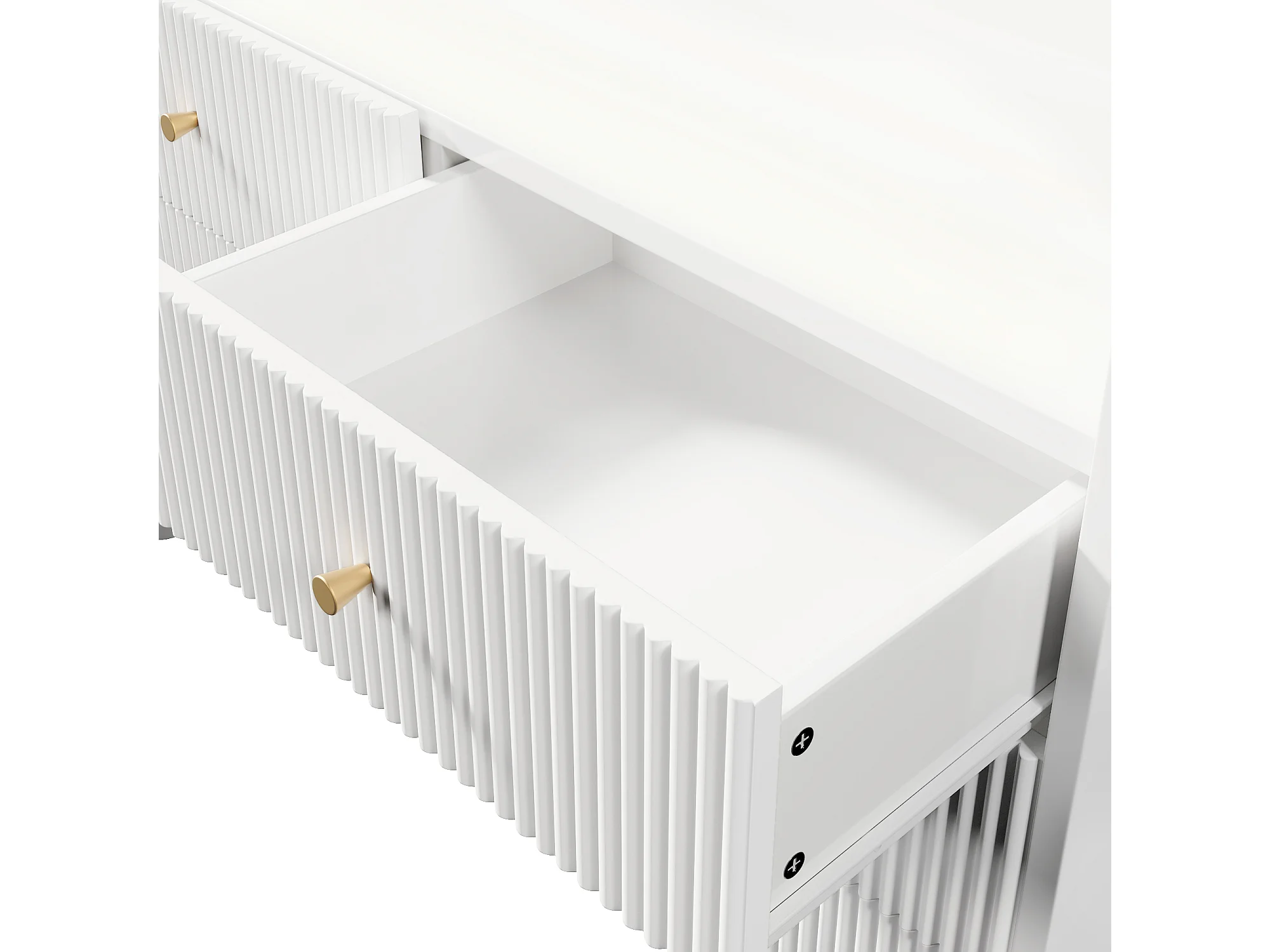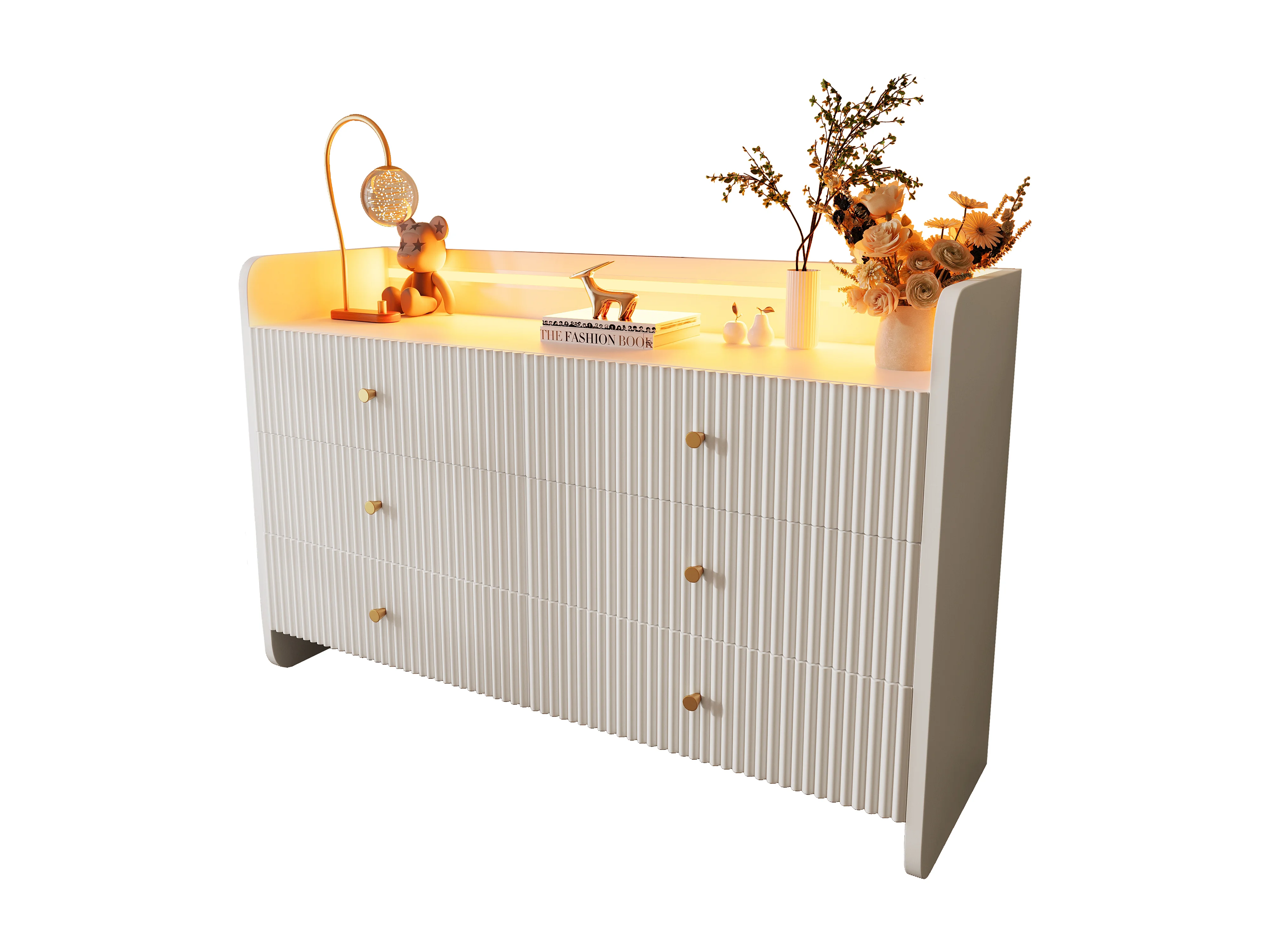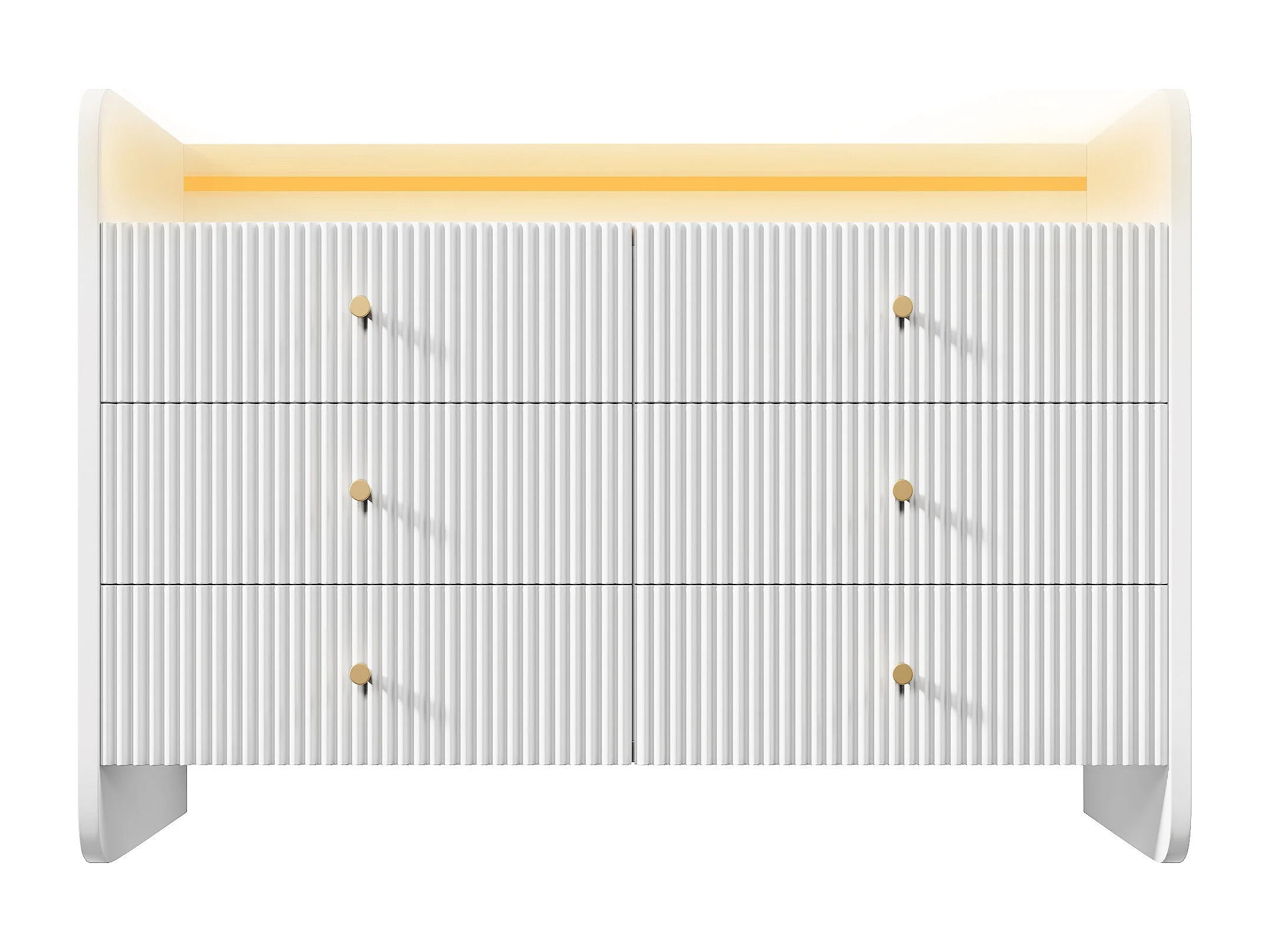 Credenza 120x40x75 cm - Mobile contenitore con illuminazione a LED e 6 cassetti - bianco con motivo a scanalature ondulate - per soggiorno e camera da letto