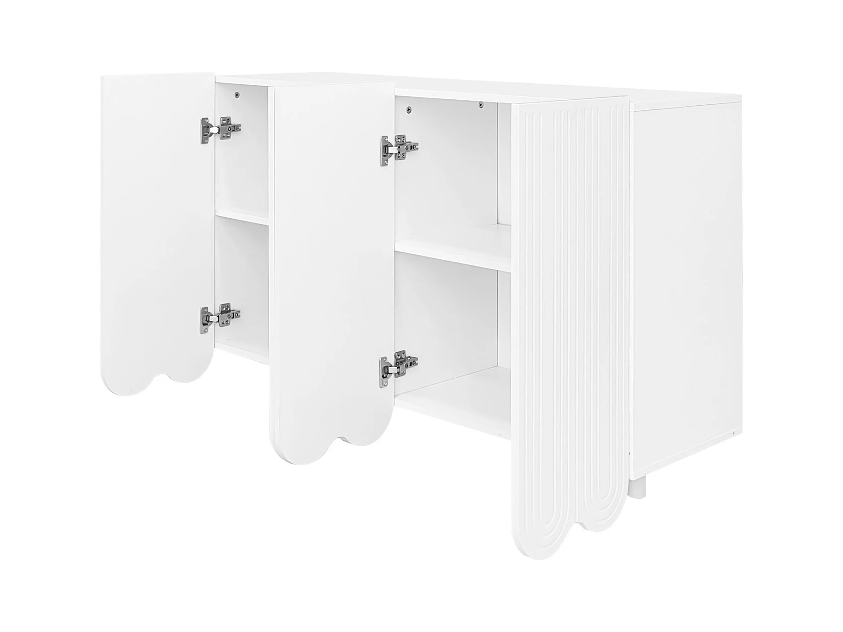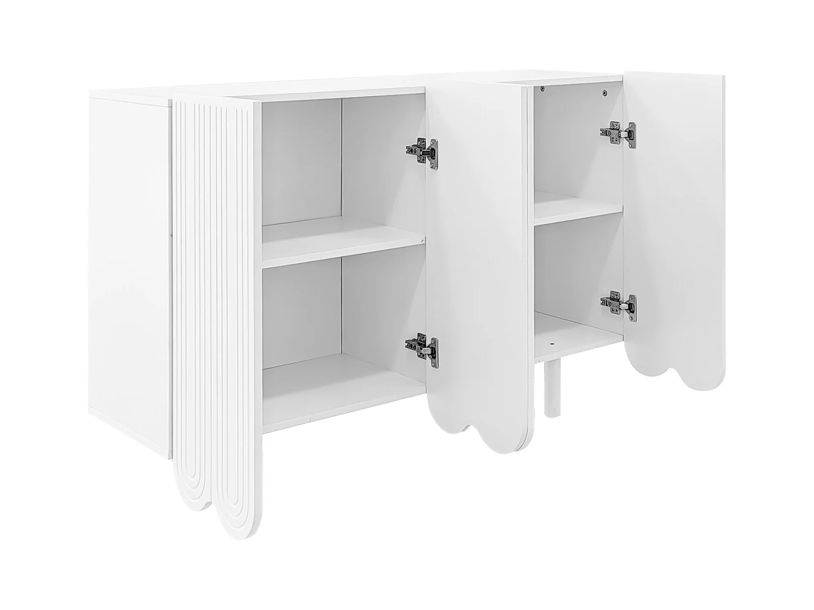 Credenza a quattro ante con ripiani interni regolabili, maniglie in metallo e piedini a sfera, bianca