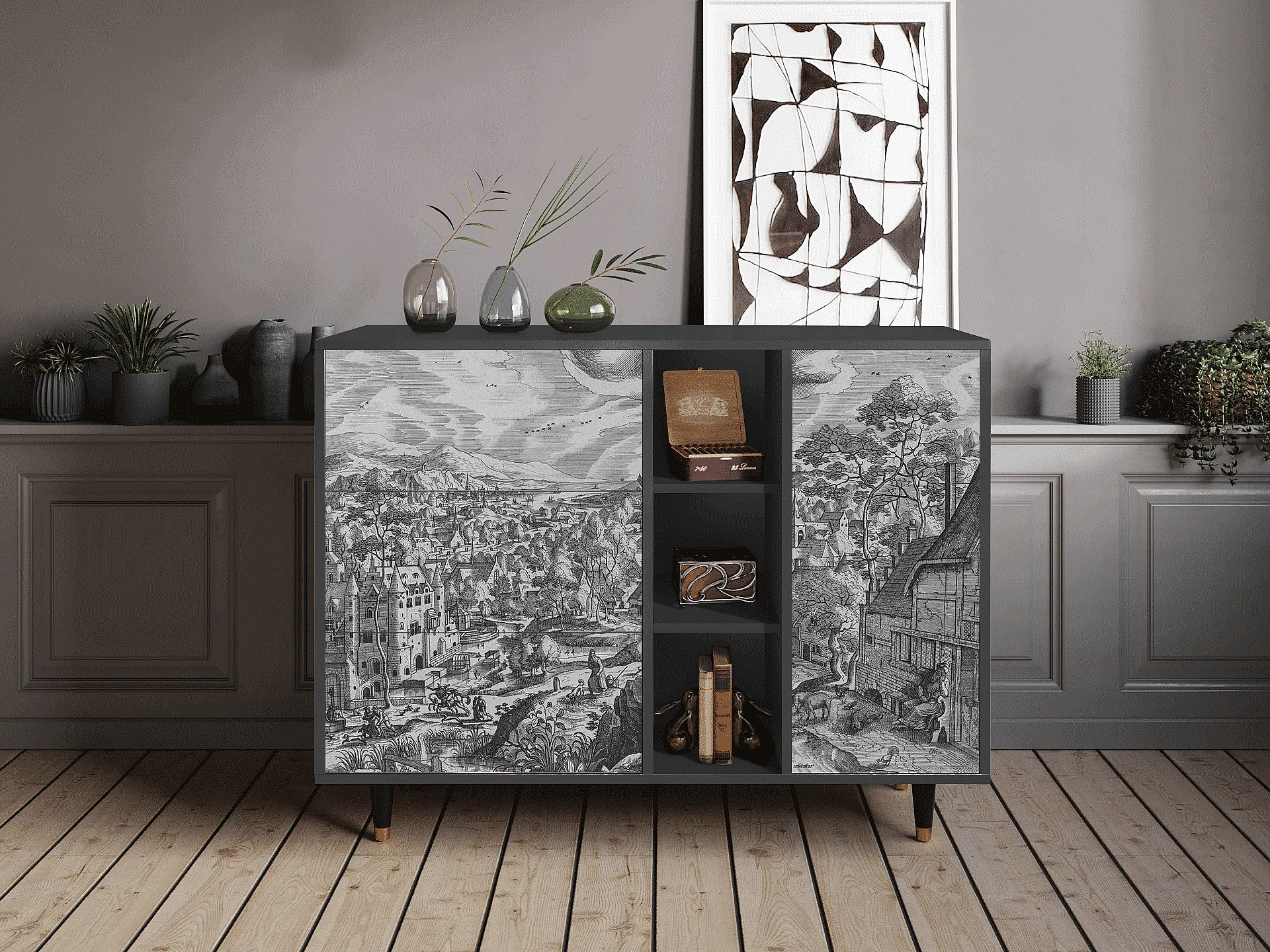Credenza - 125x98x48 cm - BS2 - Castle with Bridge, Grigio