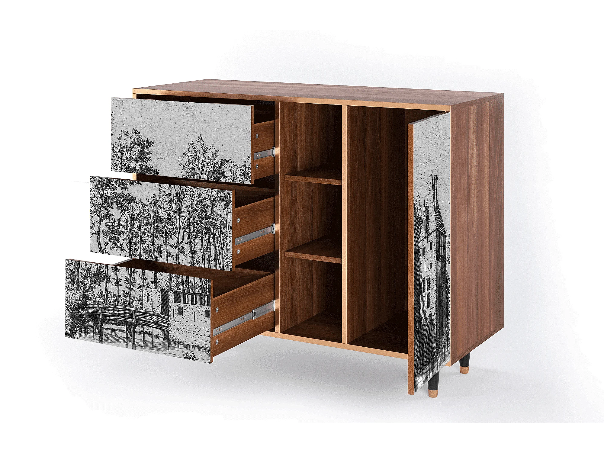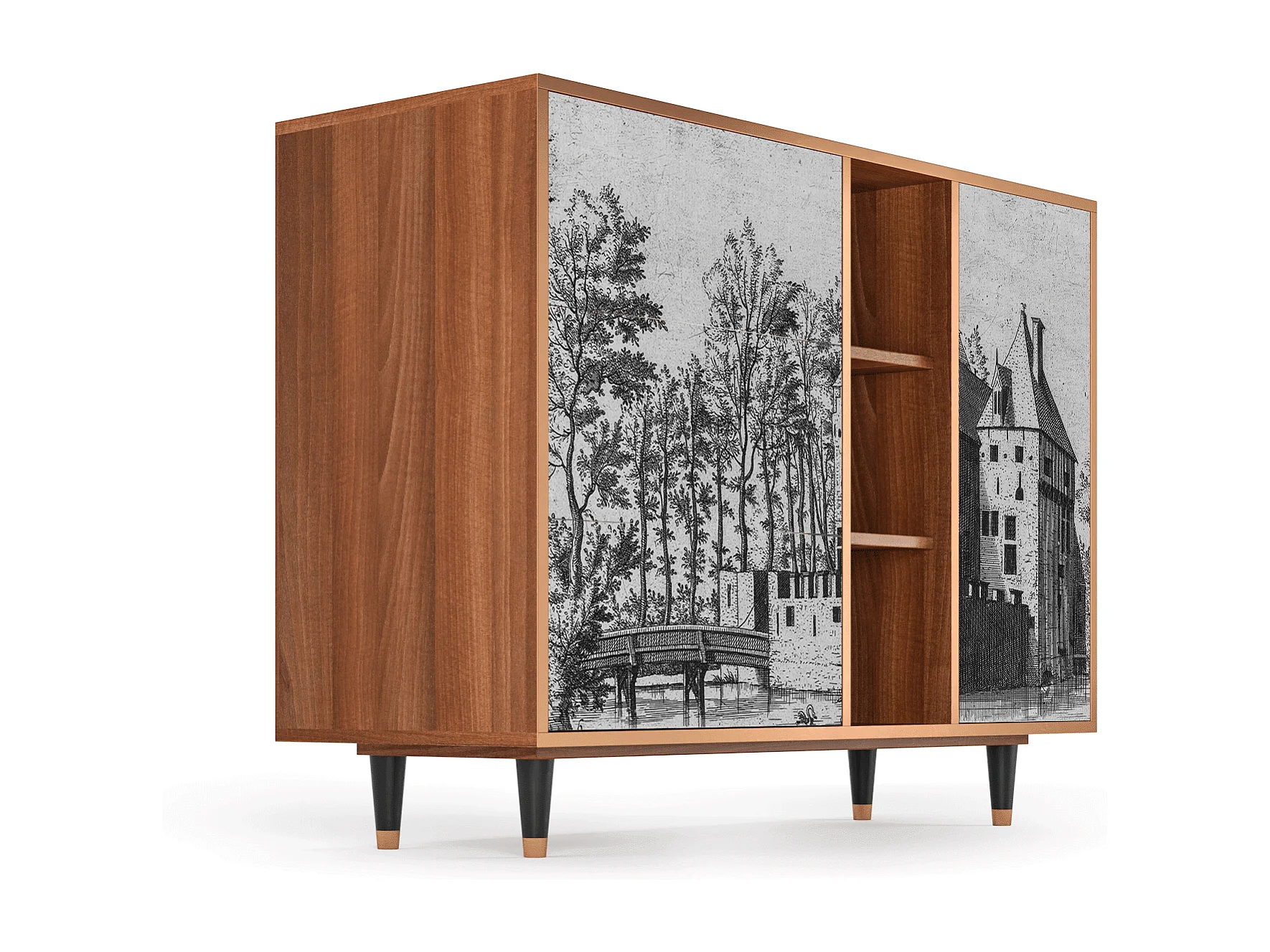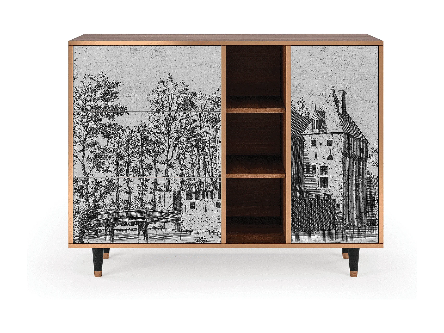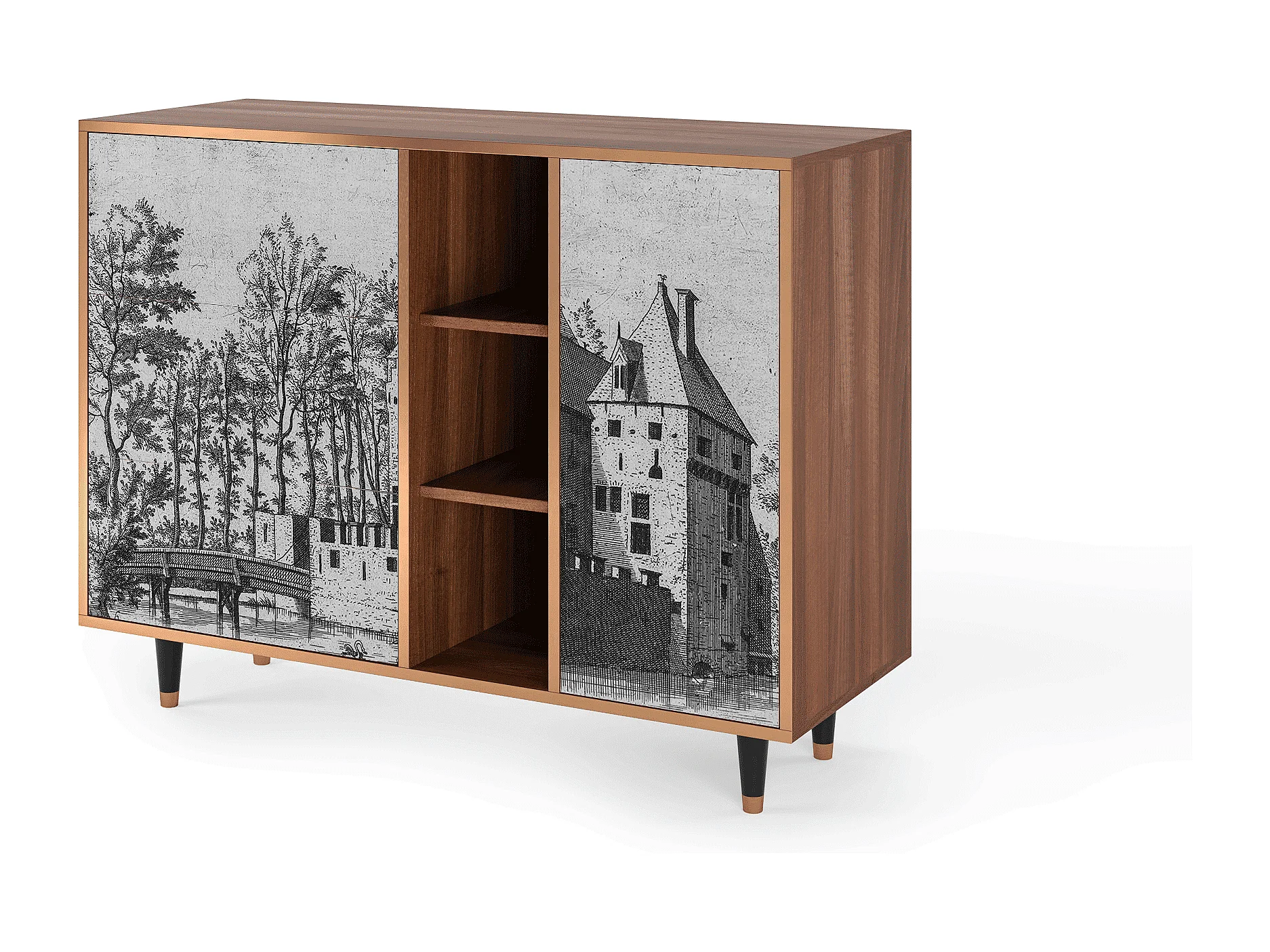Credenza - 125x98x48 cm - BS2 - Castle with Bridge, Noce