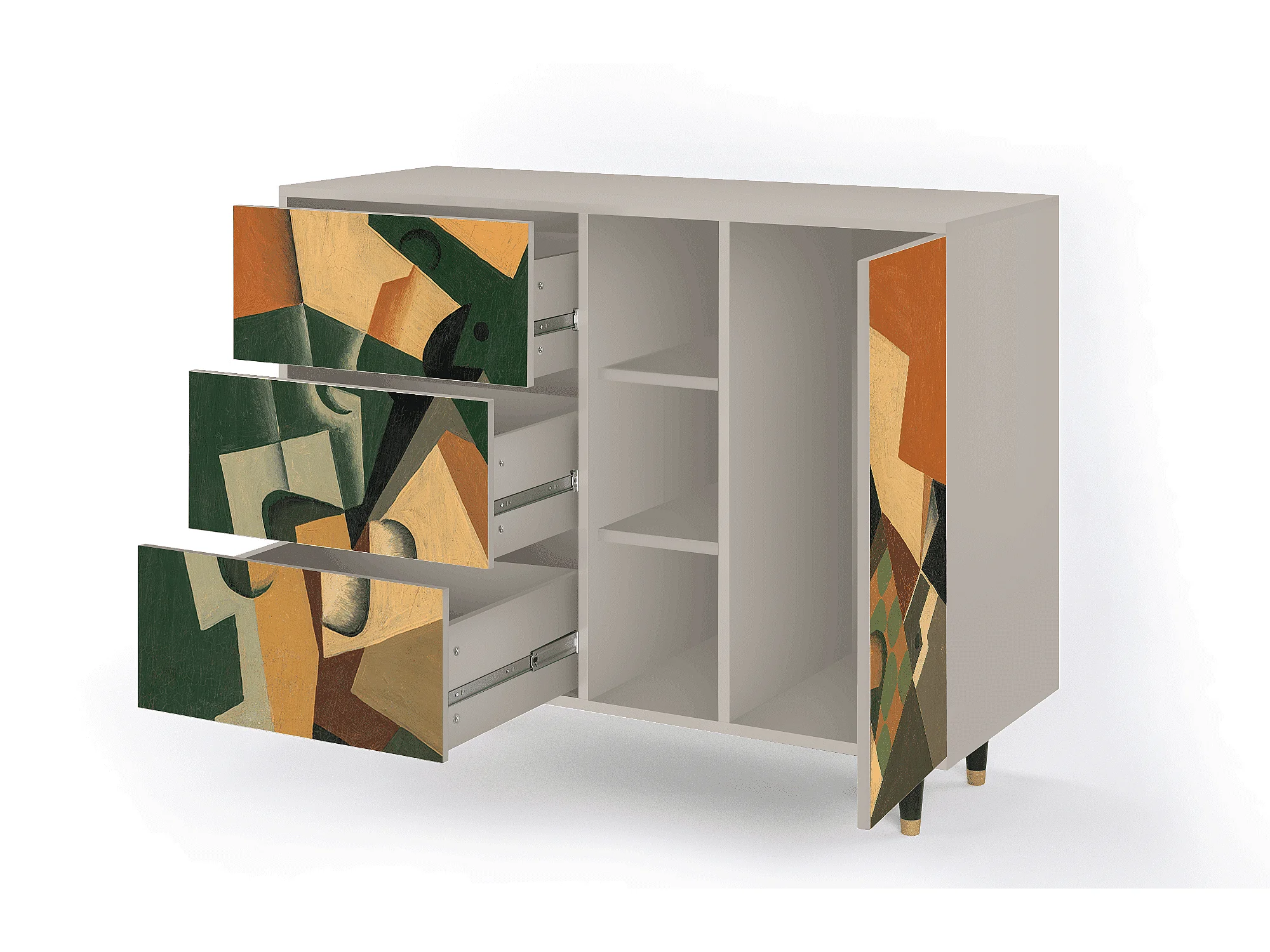 Credenza - 125x98x48 cm - BS2 - Glass and Checkerboard, Sabbia