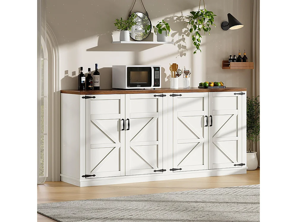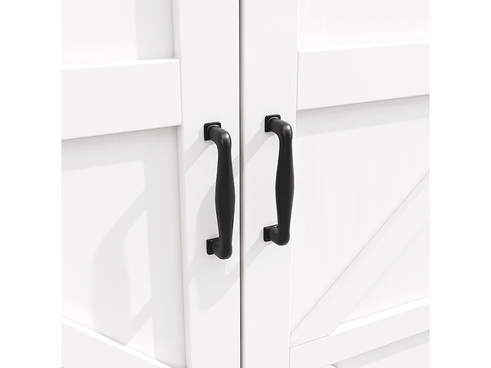 Credenza 160 x 40 x 85 cm, stile rustico, due ripiani regolabili in altezza, bianco