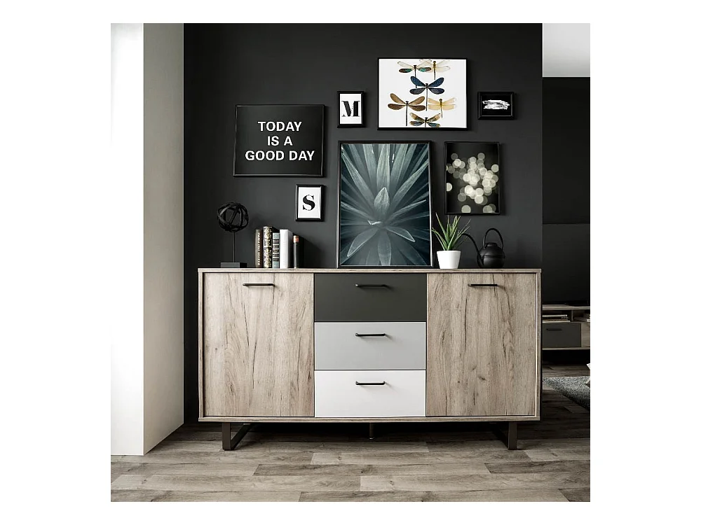 Madia 4 ante Fiona 180x35,6x82H colore rovere e antracite