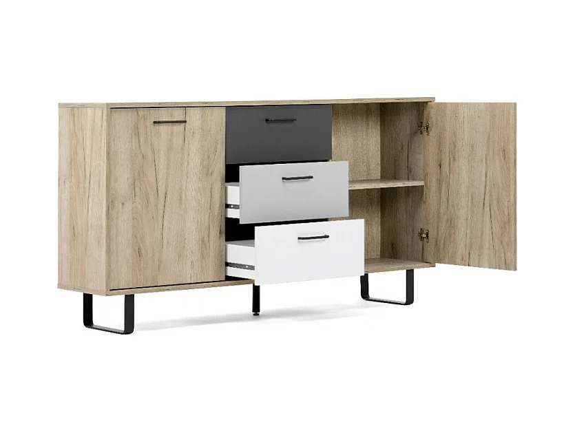 Madia Nordik 4 ante e 1 cassetto in noce e bianco spatolato 170x39.6x85H – Stile e funzionalità