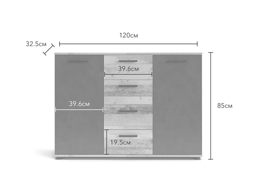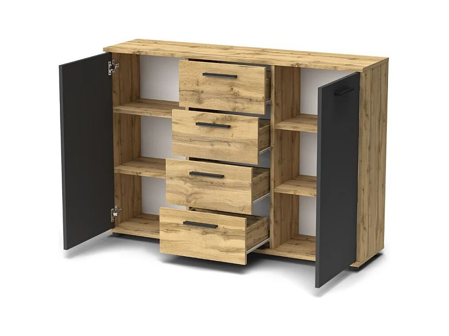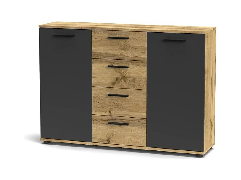 Credenza 2 ante e 4 cassetti rovere e antracite Berno4 120,2x32,5x85,3h
