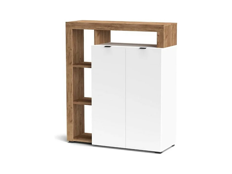 Credenza 2 ante e cornice con vani a giorno rovere tabacco e bianco Nexon2 108x41x126H